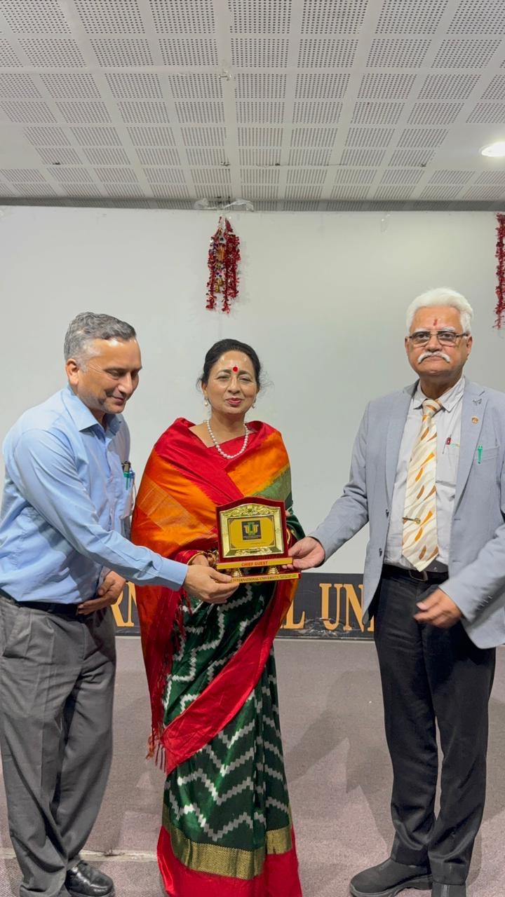 अपने प्रेरणादायी संबोधन में मुख्य अतिथि प्रो. अनुपमा सिंह ने महिलाओं के अधिकारों, समाज में उनकी महत्वपूर्ण भूमिका तथा सशक्त भारत के निर्माण में सशक्त नारी के योगदान पर विस्तार से विचार व्यक्त किए। उन्होंने इस बात पर विशेष प्रकाश डाला कि किस प्रकार एक महिला अपने घर-परिवार की जिम्मेदारियों के साथ-साथ अपने पेशेवर दायित्वों को भी पूरी निष्ठा और कुशलता से निभाती है। उन्होंने छात्राओं को आत्मनिर्भर बनने तथा अपने सपनों को साकार करने के लिए निरंतर प्रयासरत रहने के लिए प्रेरित किया।