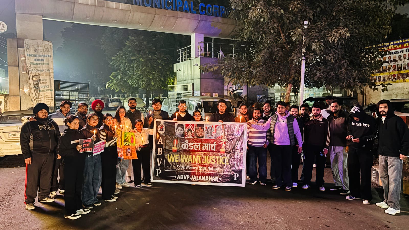 अखिल भारतीय विद्यार्थी परिषद (एबीवीपी) जालंधर द्वारा आज कंपनी बाग से ज्योति चौक तक एक कैंडल मार्च निकाला गया, जिसमें हाल ही में एक बच्ची के साथ हुई घटना के लिए न्याय की मांग उठाई गई। इस मार्च में प्रदेश मंत्री जसकरण भुल्लर, प्रदेश उपाध्यक्ष डॉ. पंकज बग्गा, एबीवीपी जालंधर मंत्री रिदम बागा, सह मंत्री तम्मना, साथ ही पृषिता, जशनप्रीत सिंह और अन्य अनेक पदाधिकारी तथा विद्यार्थी विशेष रूप से उपस्थित रहे।