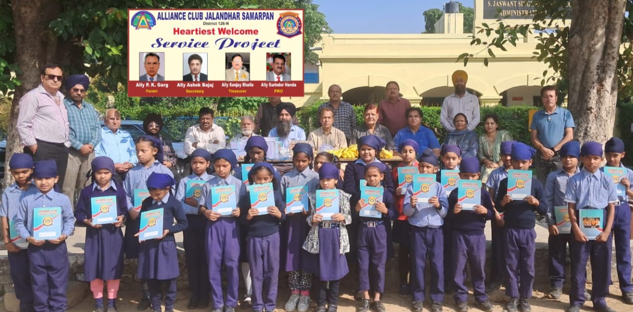 अलायंस क्लब जालंधर समर्पण ने सेवा के प्रकल्पों की लड़ी को आगे बढ़ाते हुए प्रधान ऐली पवन कुमार गर्ग की अगुवाई में दोआबा खालसा सीनियर स्केंडरी स्कूल लाडोवाली रोड में बच्चों को फल स्वीट्स व स्टेशनरी भेंट की। इस प्रोजेक्ट में प्रधान पवन कुमार गर्ग ने आपने जन्मदिन पर सहयोग किया।उप गवर्नर प्रथम एन के महेंद्रू ने कहा कि अलायंस क्लब जालंधर समर्पण समाज व मानवता की सेवा के लगातार प्रोजेक्टस कर रहे हैं, युनीक होम में प्रोजेक्ट, फूड फार हंगर, जरूरतमंदों के आंखों के ऑपरेशन, बच्चो को स्टेशनरी काबिले तारीफ है। सीनियर वाइस प्रधान विनोद कुमार कौल ने सभी का धन्यवाद किया। इस मौके पर प्रथम ऐली लेडी कमलेश गर्ग, उप गर्वनर प्रथम एन के महेंद्रू,पूर्व प्रधान केवल शर्मा,संजीव गंभीर,दया कृष्ण छाबड़ा,सचिव अशोक बजाज,सीनियर वाईस प्रधान विनोद कुमार कौल,जयदेव मल्होत्रा,नरेंद्र शर्मा,लोकेश बजाज,अशोक मेहता,गुलजारी लाल गुप्ता,ऐ के बहल,नंदनी गर्ग,प्रिसिंपल हरमिंदर सिंह अटवाल व अन्य सदस्य उपस्थित हुए।