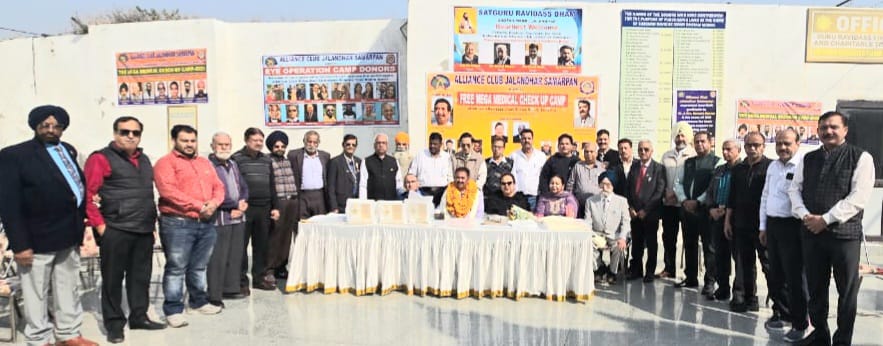 अलायंस क्लब जालंधर समर्पण ने सेवा के प्रकल्पों की लड़ी को आगे बढ़ाते हुए प्रधान पवन कुमार गर्ग एंव मुख्य मेहमान नवनीत कुमार यू ऐस ऐ एंव डिस्ट्रिक्ट गवर्नर संदीप कुमार की अगुवाई में सतगुरु श्री रविदास धाम, बूटा मंडी जालंधर में एक निशुल्क विशाल मैडिकल कैंप का आयोजन किया गया,जिसमें आंखों का,दांतों का, बच्चों का,जनरल,बी पी, शूगर व आम रोगों के चेकअप के लिए डा जगदीप सिंह,डा एस एल चावला, डा आर सी गुलाटी,डा जतिंदर शर्मा,डा मनीषा शर्मा,डा सगरप्रीत सिंह,डा हरप्रीत सिंह,डा दविंदर शर्मा ने कैंप में सहयोग किया।प्रोजेक्ट डायरेक्टर विजय शर्मा ने बताया कि इस कैंप में 792 पेशेंटों के अलग अलग रोगों का चेकअप किया गया व निशुल्क दवाईंया दी गई और तकरीबन 200 आंखों के पेशेंटों को फ्री औपरेशन करवाने के लिए चुना गया। संदीप कुमार ने कहा कि समर्पण क्लब ने स्लम ऐरिया में मेडिकल कैंप लगा कर 792 जरूरतमंद लोगों का चेकअप व फ्री दवाईंया, ओप्रेशन करना एक सराहनीय कदम है,उन्होने मुख्य मेहमान व डोनर का धन्यवाद किया।सभी डॉक्टर्स को शील्ड व सरोपा भेंट कर सन्मानित किया गया।इस अवसर पर गेस्ट ऑफ ऑनर वी डी जी-1 एन के महेंद्रू, वी डी जी-2 पदम लाल, प्रोजेक्ट डायरेक्टर विजय शर्मा, सचिव अशोक बजाज, संजय भल्ला,सुरेंद्र हांडा, रीजन चेयरमैन कुलविंदर फुल्ल,कोआर्डिनेर विनोदकुमार कौल,केवल शर्मा,डीसीएस राजेश साहनी,जिला पीआरओ हरपाल सिंह,जगन नाथ सैनी,चेयरमैन सेठ सतपाल मल्ल, प्रधान हरदयाल बंगड़,सीनियर वाईस प्रधान राजेन्द्र काका,गौरव महे खजांची,पी आई डी अनिल कुमार,पूर्व गवर्नर एच एस बाबा,दया कृष्ण छाबड़ा, जी डी कुन्द्रा,संजीव गंभीर, ऐ के बहल,हर्षवर्धन शर्मा, लोकेश बजाज,गुलजारी लाल गुप्ता,सेवा सिंह गोमरा,मनोज कुमार,आर के कोहली,जयदेव मल्होत्रा, नरेंद्र शर्मा,अशोक मेहता, खुशपाल सिंह,राजेंद्र चोपड़ा,दीपक कौड़ा, मोहित सेठ व अन्य सदस्य उपस्थित हुए।