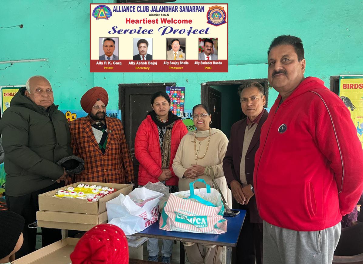 अलायंस क्लब जालंधर समर्पण ने सेवा के प्रकल्पों की लड़ी को आगे बढ़ाते हुए व डिस्ट्रिक्ट स्लोगन प्यार व जुनून के साथ सेवा के तहत प्रधान पवन कुमार गर्ग की अगुवाई में मानव सहयोग सोसाइटी की तरफ से चलने वाले प्राइमरी स्कूल काजी मंडी में बच्चों को स्नेक्स,पेस्टियां,चाकलेट,बिस्कुट व फल वितरित किए।पूर्व प्रधान दया कृष्ण छाबड़ा ने बताया कि समर्पण क्लब प्रधान पवन कुमार गर्ग की अगुवाई में जरूरतमंद बच्चे जो आर्थिक रूप से कमजोर हैं,उनको पढ़ाई कराने के लिए मदद कर रही है और मानवता की सेवा के लिए सराहनीय कार्य कर रही है। प्रोजेक्ट डायरेक्टर ऐली संतोष वर्मा ने अपनी शादी की सालगिरह पर सहयोग किया।गर्ग साहब ने सभी का धन्यवाद करते हुए संतोष वर्मा को शुभकामनाऐं दी।इस अवसर पूर्व प्रधान दया कृष्ण छाबड़ा,पीआरओ सुरेंद्र हांडा,ऐली जयदेव मल्होत्रा,स्कूल टीचर व बच्चे उपस्थित थे।