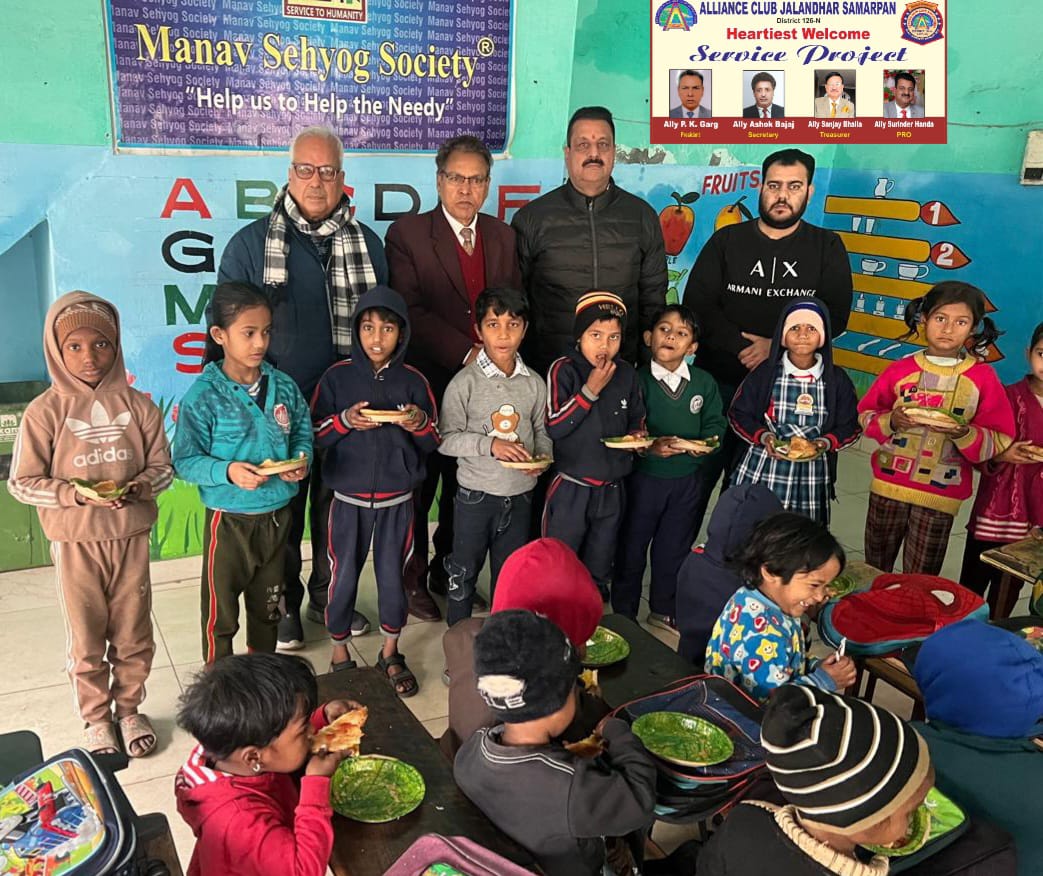 अलायंस क्लब जालंधर समर्पण ने सेवा के प्रकल्पों की लड़ी को आगे बढ़ाते हुए व डिस्ट्रिक्ट स्लोगन प्यार व जुनून के साथ सेवा के तहत प्रधान पवन कुमार गर्ग की अगुवाई में मानव सहयोग सोसाइटी की तरफ से चलने वाले प्राइमरी स्कूल काजी मंडी में बच्चों को स्नेक्स,बिस्कुट व फल वितरित करने के साथ साथ स्टेशनरी भेंट की ।पूर्व प्रधान केवल शर्मा ने बताया कि हमारा क्लब जरूरतमंद बच्चे जो आर्थिक रूप से कमजोर हैं, उनको पढ़ाई कराने के लिए मदद करती रहती है। समर्पण क्लब समाज व मानवता की सेवा के लिए सराहनीय कार्य कर रही है। ऐली पवन कुमार गर्ग ने अपनी पत्नी कमलेश गर्ग के जन्मदिन की खुशी में सहयोग किया।इस अवसर पर पूर्व प्रधान केवल शर्मा,पीआरओ सुरेंद्र हांडा,ऐली मोहित सेठ, स्कूल टीचर व बच्चे उपस्थित थे।