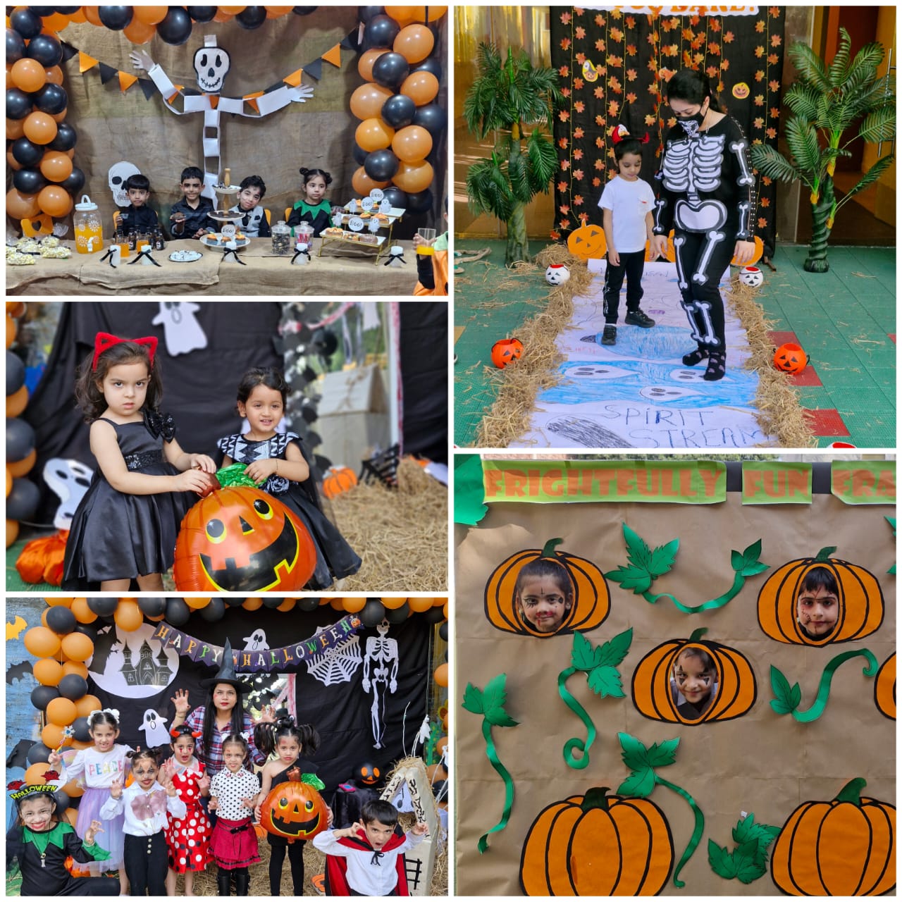 शिक्षकों द्वारा उम्र के अनुसार कई गतिविधियां (activities) नियोजित की गईं। प्लेवे (Playway) के बच्चों को कद्दू पेंट करने और मकड़ियों को चुनने में लगाया गया। नर्सरी कक्षा के छात्रों के लिए, जाले पेंट करने और डरावनी बोतलों व कद्दू के साथ बॉलिंग खेलने की व्यवस्था की गई थी। K1 ग्रेड के बच्चों ने डरावना हॉप्सकॉच (langdi taang) खेला और चुड़ैल की टोपी पर छल्ले फेंके। K2 ग्रेड के लिए, डरावनी चीजों के साथ टिक टैक टो (tic tac toe) गेम और डरावने शब्दों के लिए वर्ड सर्च गेम की योजना बनाई गई थी।