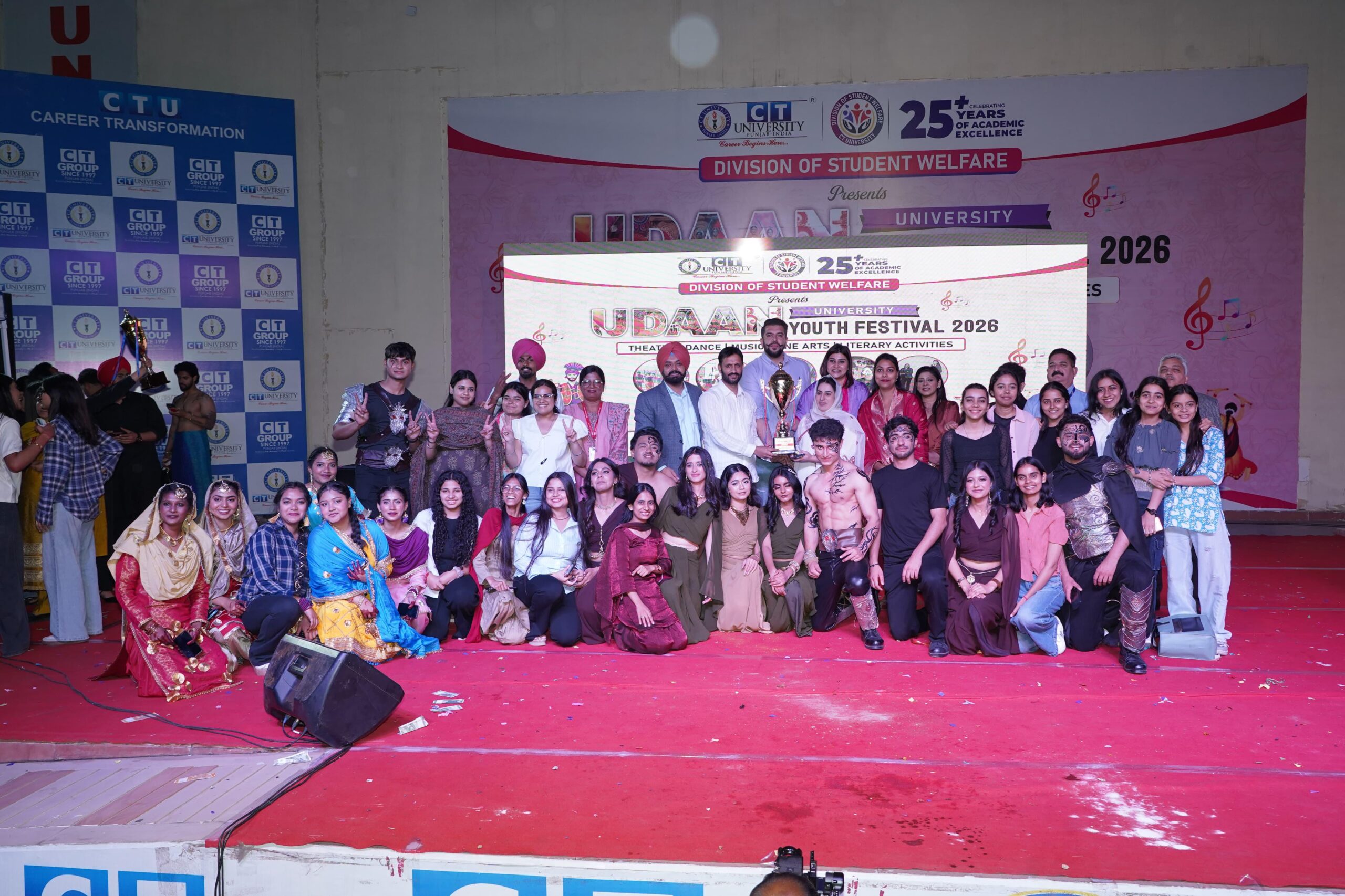 सी टी विश्वविद्यालय में आयोजित प्रमुख सांस्कृतिक उत्सव “उड़ान 2026” ने पूरे परिसर को ऊर्जा, उत्साह और रचनात्मकता से भर दिया। यह दो दिवसीय आयोजन विद्यार्थियों की प्रतिभा, विविधता और सांस्कृतिक समृद्धि का शानदार प्रदर्शन था।