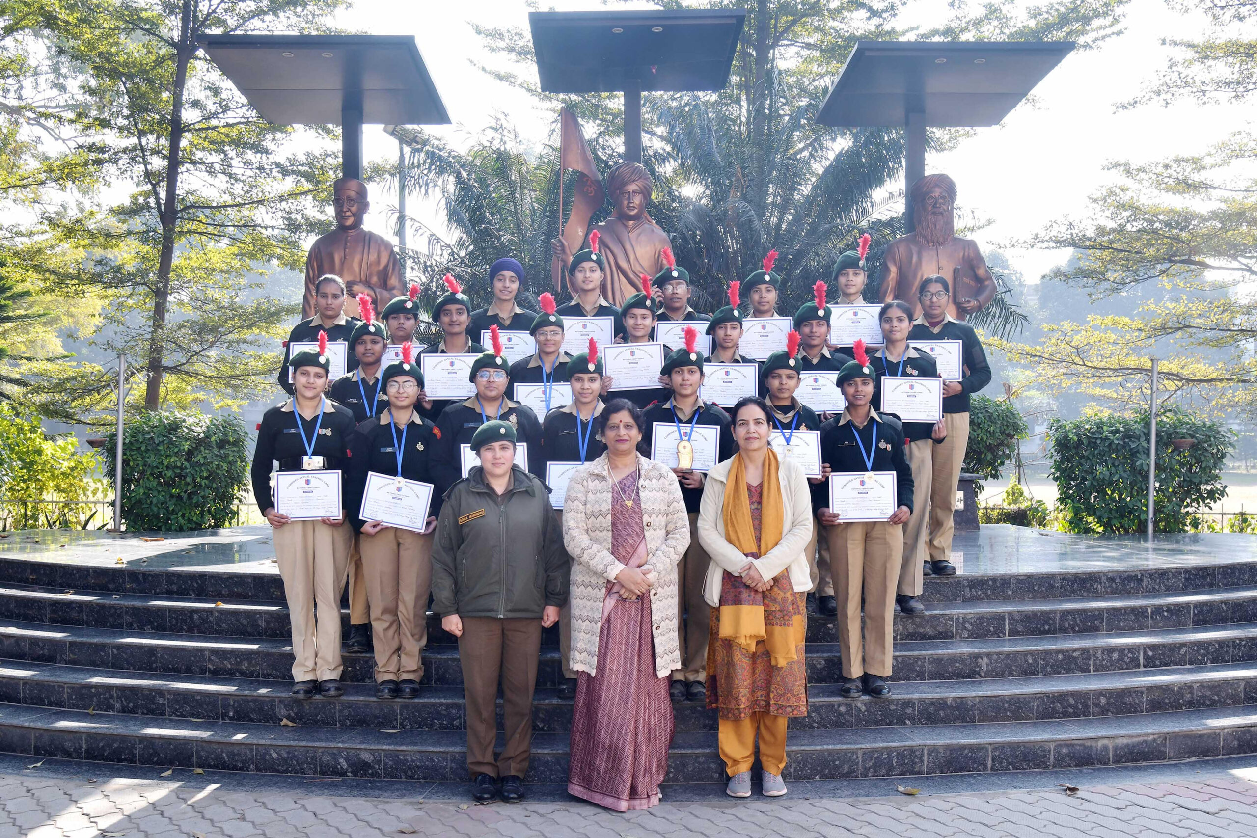 हंसराज महिला महाविद्यालय जालंधर की एनसीसी आर्मी विंग की कैडेट्स ने संयुक्त वार्षिक प्रशिक्षण शिविर-42 (ष्ट्रञ्जष्ट-42) में 11 पदक जीतकर संस्थान का नाम रोशन किया। यह शिविर 2 पंजाब (गर्ल्स) बटालियन एनसीसी, जालंधर के तत्वावधान में जालंधर कैंट में आयोजित किया गया। शिविर के दौरान कैडेट्स ने शारीरिक प्रशिक्षण, ड्रिल, हथियार प्रशिक्षण, व्यायानों तथा विभिन्न प्रतियोगिताओं में उत्साहपूर्वक भाग लिया। उनकी कड़ी मेहनत और अनुशासन के परिणामस्वरूप उन्होंने कई प्रतियोगिताओं में उत्कृष्ट प्रदर्शन किया। कैडेट निकिता, मन्नत, दीपिका, कोमल और पूजा ने गिद्दा प्रतियोगिता में रजत पदक प्राप्त किए। कैडेट कोमल और पूजा ने समूह गीत प्रतियोगिता में भी रजत पदक जीते। कैडेट अश्मिता ने प्रश्नोत्तरी प्रतियोगिता में रजत पदक प्राप्त किया, जबकि कैडेट हानिया ने हथियार संयोजन प्रतियोगिता में रजत पदक हासिल किया। सीनियर अंडर ऑफिसर (स्ह्र) दीपिका को कंपनी सीनियर के रूप में अपने कर्तव्यों का कुशलतापूर्वक निर्वहन करने के लिए विशेष रूप से समानित किया गया। कमांडिंग ऑफिसर कर्नल आर. एस. लेहल, एसएम ने कैडेट्स को शिविर सफलतापूर्वक पूर्ण करने तथा पुरस्कार जीतने पर बधाई दी। प्राचार्या डॉ. (श्रीमती) एकता खोसला ने भी कैडेट्स को शुभकामनाएं देते हुए कहा कि एचएमवी की एनसीसी कैडेट्स सदैव संस्थान का गौरव बढ़ाती हैं। उन्होंने कहा कि महाविद्यालय को अपनी एनसीसी कैडेट्स पर गर्व है। इस अवसर पर एएनओ लेटिनेंट सोनिया महिंदरू भी उपस्थित रहीं।