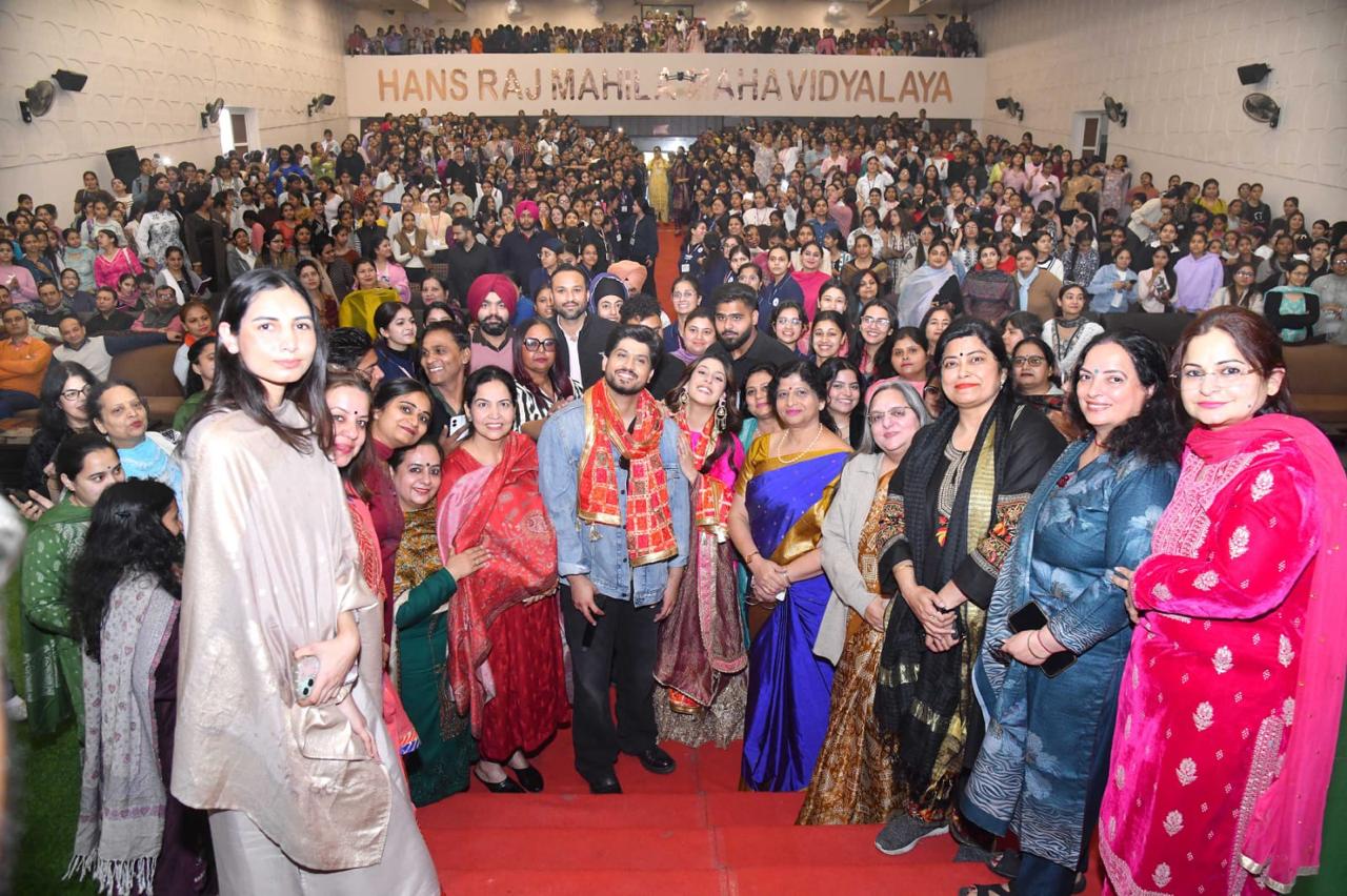 हंसराज महिला महाविद्यालय में उस समय उत्सव जैसा माहौल बन गया जब प्रसिद्ध पंजाबी गायक एवं अभिनेता गुरनाम भुल्लर तथा लोकप्रिय अभिनेत्री ईशा मालवीय अपनी आगामी पंजाबी फिल्म ‘इश्क दे लेखेÓ के प्रचार हेतु महाविद्यालय पहुँचे। छात्राओं में विशेष उत्साह और उमंग देखने को मिली। प्राचार्या डॉ. (श्रीमती) एकता खोसला, डीन यूथ वेलफेयर डॉ. नवरूप डीन यूथ वैलफेयर, कार्यक्रम की संयोजिका डॉ. आशमीन कौर तथा डॉ. राखी मेहता ने कलाकारों का पारंपरिक रूप से स्वागत किया। उन्हें प्रेम और समान के प्रतीक स्वरूप ग्रीन प्लांटर एवं फुलकारियाँ भेंट की गईं। प्राचार्या डॉ. एकता खोसला ने पंजाबी सिनेमा और संस्कृति में उनके योगदान की सराहना की। छात्राओं के साथ संवाद करते हुए कलाकारों ने फिल्म से जुड़े अपने अनुभव साझा किए तथा उन्हें परिश्रम और समर्पण के साथ अपने सपनों को साकार करने के लिए प्रेरित किया। यह कार्यक्रम छात्राओं के लिए अविस्मरणीय बन गया और पूरा परिसर तालियों की गड़गड़ाहट से गूंज उठा। कार्यक्रम का समापन हर्षोल्लास, सेल्फ़ियों और मधुर यादों के साथ हुआ, जिसने एचएमवी परिवार के लिए इस दिन को यादगार बना दिया।