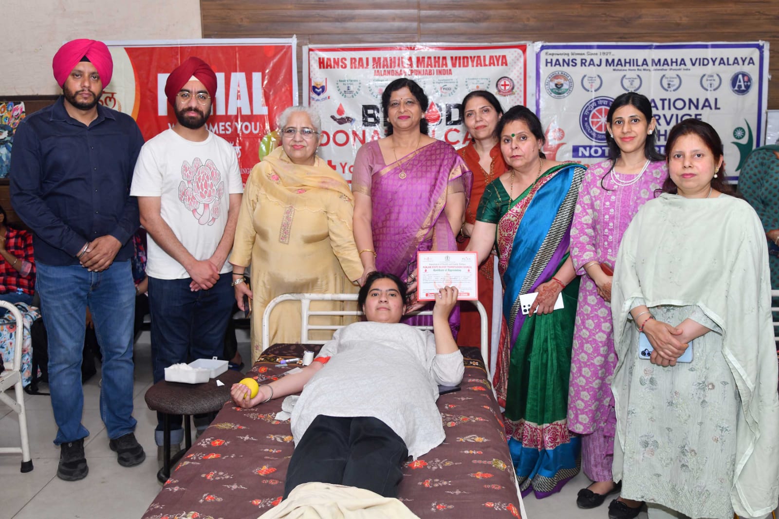 हंसराज महिला महाविद्यालय, जालंधर में समाज सेवा और मानवीय मूल्यों को प्रोत्साहित करने के उद्देश्य से एनएसएस, रेड क्रॉस सोसायटी तथा रेड रिबन क्लब द्वारा पहल एनजीओ के सहयोग से रक्तदान शिविर का सफल आयोजन किया गया। इस शिविर के संचालन में सिविल अस्पताल, जालंधर की मेडिकल टीम ने महत्वपूर्ण सहयोग प्रदान किया और रक्तदान की प्रक्रिया को पूर्णत: सुरक्षित एवं सुव्यवस्थित ढंग से सपन्न कराया। रक्तदान शिविर में महाविद्यालय की छात्राओं ने उत्साह और सेवा भावना के साथ भाग लेते हुए मानवता के इस महान कार्य में अपनी सक्रिय भागीदारी दर्ज कराई। छात्राओं ने स्वेच्छा से रक्तदान कर समाज के प्रति अपनी जिमेदारी का परिचय दिया। इस शिविर के दौरान कुल 20 यूनिट रक्त एकत्रित किया गया, जो जरूरतमंद मरीजों के लिए अत्यंत उपयोगी सिद्ध होगा। इस अवसर पर छात्राओं में रक्तदान के प्रति विशेष जागरूकता और उत्साह देखने को मिला। कार्यक्रम के दौरान महाविद्यालय के फैकल्टी सदस्यों डॉ. ममता, डॉ. संदीप तथा सुश्री नंदिता ने भी रक्तदान कर छात्राओं को प्रेरित किया। उनके इस प्रेरणादायक कदम ने छात्राओं में सेवा, सहयोग और परोपकार की भावना को और अधिक सुदृढ़ किया। प्राचार्या डॉ. एकता खोसला ने इस आयोजन हेतु एनएसएस के प्रोग्राम ऑफिसर श्रीमती कुलजीत कौर, डॉ. ज्योति गोगिया, सुश्री हरमनु, डॉ. दीप्ति धीर , रेड रिबन क्लब की इंचार्ज डॉ. दीपाली और डॉ. संदीप, रेड क्रॉस सोसायटी की इंचार्ज श्रीमती पवन कुमारी तथा डॉ. वंदना की सराहना की। इस अवसर पर अपने संदेश में उन्होंने कहा कि रक्तदान एक महान मानवीय सेवा है, जो किसी जरूरतमंद व्यक्ति के जीवन को बचाने में महत्वपूर्ण भूमिका निभाती है। उन्होंने छात्राओं को भविष्य में भी ऐसे सामाजिक और मानवीय कार्यों में बढ़-चढ़कर भाग लेने के लिए प्रेरित किया तथा इस सराहनीय पहल के लिए एनएसएस, रेड क्रॉस सोसायटी, रेड रिबन क्लब, सिविल अस्पताल की टीम और पहल एनजीओ के प्रयासों की प्रशंसा की। उन्होंने पहल टीम की अध्यक्ष श्रीमती हरविंदर कौर, श्री बागेश्वर सिंह, मुय संचालक मोहित रूबल एवं मैनेजर प्रदीप कुमार, सिविल अस्पताल से डॉ. गुरविंदर और डॉ. गगनदीप को स्मृति चिन्ह भेंट कर हार्दिक अभिनंदन किया। कार्यक्रम के अंत में श्रीमती कुलजीत कौर ने रक्तदान करने वाली सभी छात्राओं, शिक्षकों, सिविल अस्पताल की टीम तथा सहयोगी संस्था पहल एनजीओ के प्रति आभार व्यक्त किया। यह शिविर न केवल जरूरतमंदों के लिए सहायक सिद्ध हुआ, बल्कि युवाओं में सेवा, संवेदना और सामाजिक उत्तरदायित्व की भावना को भी सुदृढ़ करने में महत्वपूर्ण कदम साबित हुआ।