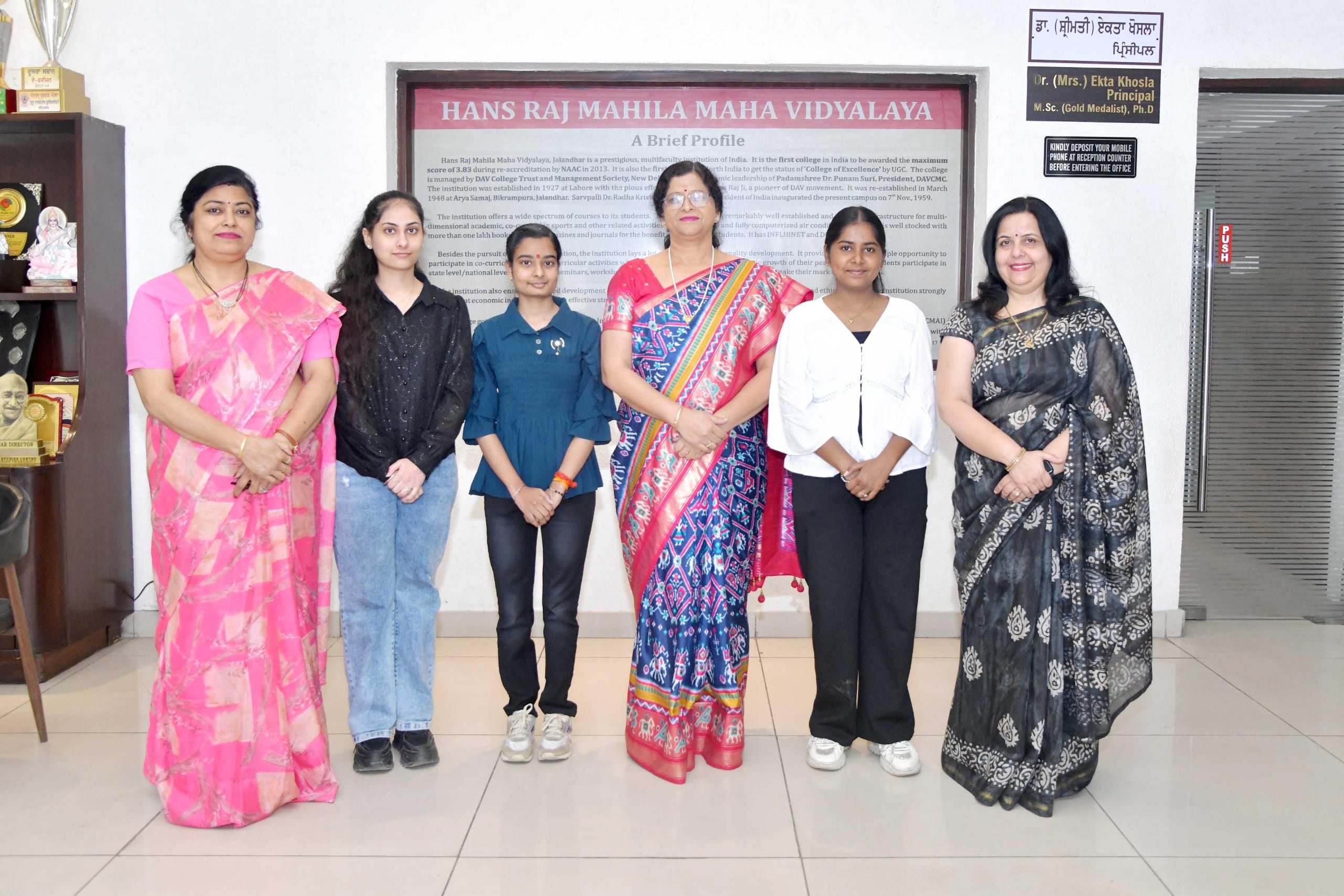 हंसराज महिला महाविद्यालय के पीजी विभाग कामर्स एंड मैनेजमेंट की छात्राओं ने सीए इंटर ग्रुप- ढ्ढढ्ढ तथा फाउंडेशन परीक्षा पास कर कालेज का नाम रोशन किया है। प्रभनूर कौर, दीपाली बुग्गल व नैंसी गुप्ता ने सीए इंटर ग्रुप- ढ्ढढ्ढ की परीक्षा तथा स्नेहा ने सीए फाउंडेशन सितंबर 2025 की परीक्षा पास कर कालेज को गौरवान्वित किया है। प्राचार्या प्रो. डॉ. (श्रीमती) एकता खोसला ने छात्राओं को बधाई दी। इस अवसर पर विभागाध्यक्षा श्रीमती मीनू कोहली व कामर्स के एसोसिएट प्रो. श्रीमती बीनू गुप्ता भी उपस्थित थे।