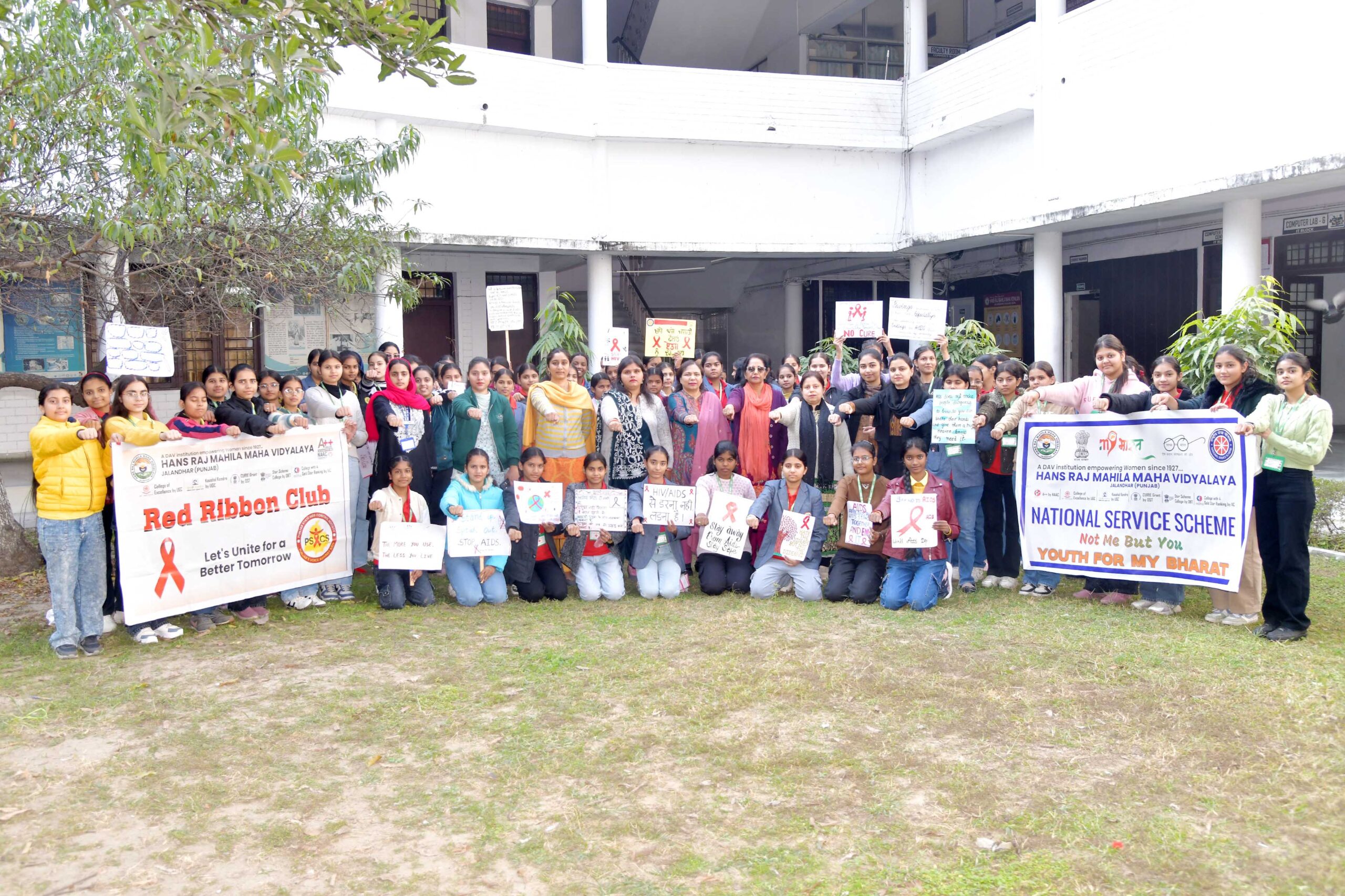 हंसराज महिला महाविद्यालय जालंधर के एनएसएस यूनिट और रैड रिब्बन क्लब के सहयोग से प्राचार्या प्रो. डॉ. (श्रीमती) एकता खोसला के दिशा-निर्देशन अधीन विश्व एड्स दिवस के उपलक्ष्य में जागरूकता अभियान का आयोजन किया गया। इस अवसर पर एड्स रोकथाम हेतु शपथ ली गई और उसेक बाद जागरूकता के लिए एक रैली भी निकाली गई। इस अभियान का उद्देश्य समाज को एड्स मुक्त करना एवं रोकथाम के लिए लोगों को शिक्षित करना रहा। इस अभियान में लगभग 100 वालंटियर ने उत्साहपूर्वक भाग लिया। प्राचार्या प्रो. डॉ. (श्रीमती) एकता खोसला ने अपने संदेेश में कहा कि एक स्वस्थ समाज के निर्माण के लिए जागरूकता, सहानुभूति एवं जिमेदार व्यवहार की अति आवश्यकता है तभी हम समाज से इस प्रकार की समस्या को खत्म कर सकते हैं। एनएसएस प्रोग्राम ऑफिसर सुश्री हरमनु और रैड रिब्बन क्लब इंचार्ज डॉ. दीपाली ने भी छात्राओं को एड्स की वास्तविकताओं को समझने पर अपने विचार व्यक्त किए और छात्राओं को ऐसे जागरूकतापूर्ण अभियानों में सक्रियता से भाग लेने हेतु प्रोत्साहित किया। इस अवसर पर एचएमवी कॉलेजिएट कोआर्डिनेटर श्रीमती अरविंदर कौर, एनएसएस सदस्य श्रीमती सतिंदर कौर, रेड रिब्बन क्लब सदस्य डॉ. संदीप, सुश्री सुकृति, सुश्री अंजु और सुश्री मुस्कान भी उपस्थित रही और कार्यक्रम को सफल बनाने में अपना सहयोग दिया।