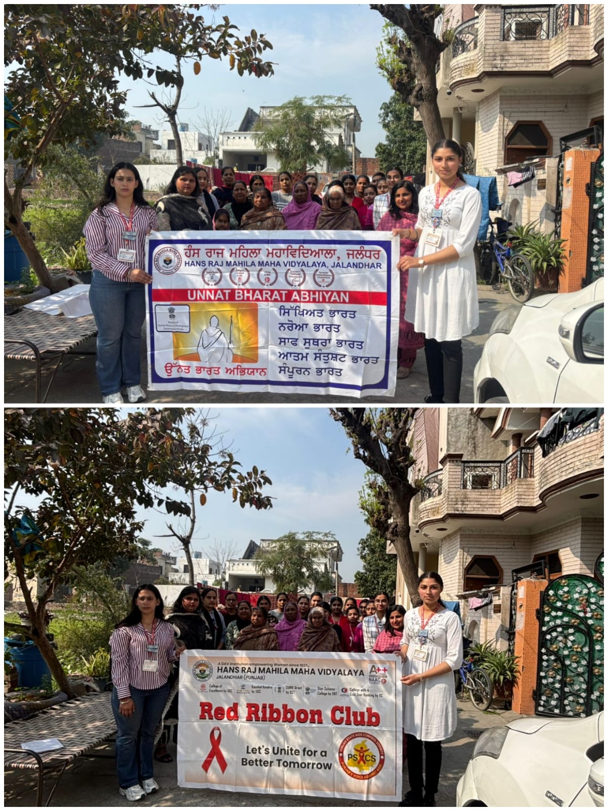 हंस राज महिला महाविद्यालय की उन्नत भारत अभियान टीम और रेड रिबन क्लब ने धालीवाल गांव में ॥ढ्ढङ्क/्रढ्ढष्ठस् के बारे में अवेयरनेस फैलाने के लिए एक कयुनिटी आउटरीच प्रोग्राम आयोजित किया। यह कार्यक्रम प्राचार्या डॉ. (श्रीमती) एकता खोसला के कुशल मार्गदर्शन में आयोजित किया गया। उन्होंने ऑर्गनाइज़िंग टीम की सराहना की और उन्हें भविष्य में भी ऐसे अवेयरनेस प्रोग्राम करते रहने के लिए प्रेरित किया । उन्नत भारत अभियान सेल की इंचार्ज डॉ. मीनाक्षी दुग्गल मेहता और रेड रिबन क्लब की कोऑर्डिनेटर डॉ. दीपाली ने गांववालों को ॥ढ्ढङ्क/्रढ्ढष्ठस् के बारे में एजुकेट किया। उन्होंने ट्रांसमिशन के तरीकों के बारे में बताया, आम गलतफहमियों को दूर किया और इन्फेक्शन के रिस्क को कम करने के लिए बचाव के तरीकों पर चर्चा की। उन्होंने यह भी साफ किया कि ॥ढ्ढङ्क हाथ मिलाने, खाना शेयर करने, गले लगने या मच्छर के काटने जैसे कैजुअल कॉन्टैक्ट से नहीं फैलता है, जिससे आम मिथकों और गलतफहमियों को दूर किया जा सके। जल्दी टेस्टिंग, सुरक्षित तरीकों, स्टेरिलाइज़्ड मेडिकल इक्विपमेंट के इस्तेमाल और एंटीरेट्रोवाइरल थेरेपी (्रक्रञ्ज) के बारे में अवेयरनेस के महत्व पर ज़ोर दिया गया। प्रोग्राम गांव के सरपंच श्री मंदीप सिंह को उनके सपोर्ट और सहयोग के लिए धन्यवाद के साथ खत्म हुआ।
