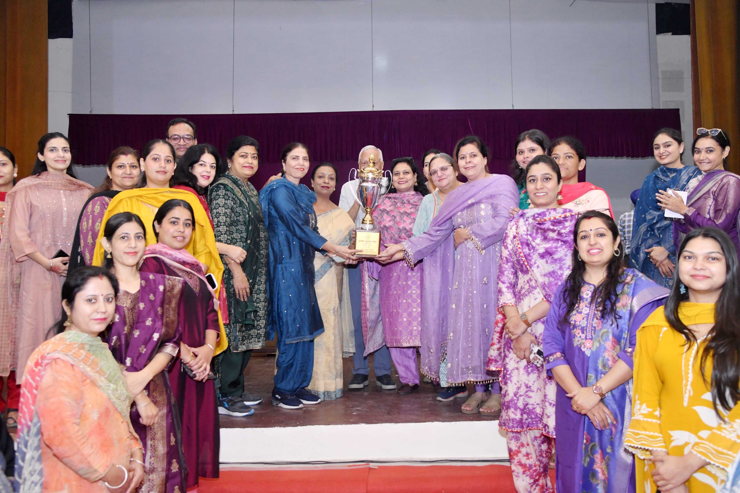 हंसराज महिला महाविद्यालय जालंधर ने प्राचार्या प्रो. डॉ. (श्रीमती) अजय सरीन के दिशा-निर्देशन अधीन व यूथ वैलफेयर डीन डॉ. नवरूप कौर एवं को-डीन श्रीमती कुलजीत कौर, श्रीमती सविता महेन्द्रू के संरक्षण में गुरु नानक देव यूनिवर्सिटी अमृतसर में आयोजित जोनल यूथ फैस्टिवल में द्वितीय रनर अप की उपाधि प्राप्त कर कालेज को गौरवान्वित किया। इस विलक्षण उपलब्धि पर प्राचार्या डॉ. अजय सरीन ने विजित सपूर्ण टीम को बधाई दी एवं बताया कि कालेज ने कुल 31 प्रतियोगिताओं में भाग लिया जिमसें से 4 प्रथम, दो द्वितीय एवं 15 तृतीय स्थान प्राप्त कर अपनी विलक्षण उपलब्धि को प्रतिस्थापित किया। कालेज ने क्विज, पेंटिंग, एलोकेशन व कविता उच्चारण में प्रथम स्थान, लोक साज, लोकगीत में द्वितीय स्थान व कोस्टयूम परेड, माईम, प्ले, शब्द, ग्रुप सांग, गजल, पोस्टर, डिबेट, ग्रुप डांस, वार, कविश्री, क्लासिकल वोकल, कार्टूनिंग, क्लासिकल डांस व वैस्टर्न इन्सट्रूमैंट में तृतीय स्थान प्राप्त कर कालेज को गौरव अनुभव करवाया। उन्होंने कहा कि कालेज छात्राओं को अकादमी मंच प्रदान करने के साथ-साथ उन्हें सांस्कृतिक मंच भी प्रदान करता है। उन्होंने डीएवीसीएमसी अध्यक्ष पदमभूषण डॉ. पूनम सूरी व चेयरमैन लोकल कमेटी जस्टिस (रिटा.) श्री एन.के. सूद का धन्यवाद किया। डीन यूथ वैलफेयर डॉ. नवरूप कौर ने भी विजित टीमों को बधाई दी एवं कहा कि एचएमवी वास्तव में हर मंच पर अपनी प्रतिभा को प्रकट करता है एवं छात्राओं का सर्वांगीण विकास कर उनके भविष्य को उजागर करता है। को-डीन श्रीमती कुलजीत कौर ने भी विजित टीमों को बधाई दी एवं उनकी विलक्षण प्रतिभा की सराहना की। इस अवसर पर कोर टीम डॉ. आश्मीन कौर, श्रीमती लवलीन कौर व श्रीमती पवन कुमारी भी उपस्थित रहे। डोकूमैंटेशन टीम से डॉ. काजल पुरी (इंचार्ज), श्रीमती शिफाली कश्यप, डॉ. जीवन देवी, डॉ. दीप्ति धीर को भी बधाई दी। समस्त सदस्यों ने ढोल की थाप पर डांस कर अपनी खुशी जाहिर की। इस अवसर पर टीचिंग व नॉन टीचिंग सदस्य भी उपस्थित रहे।
