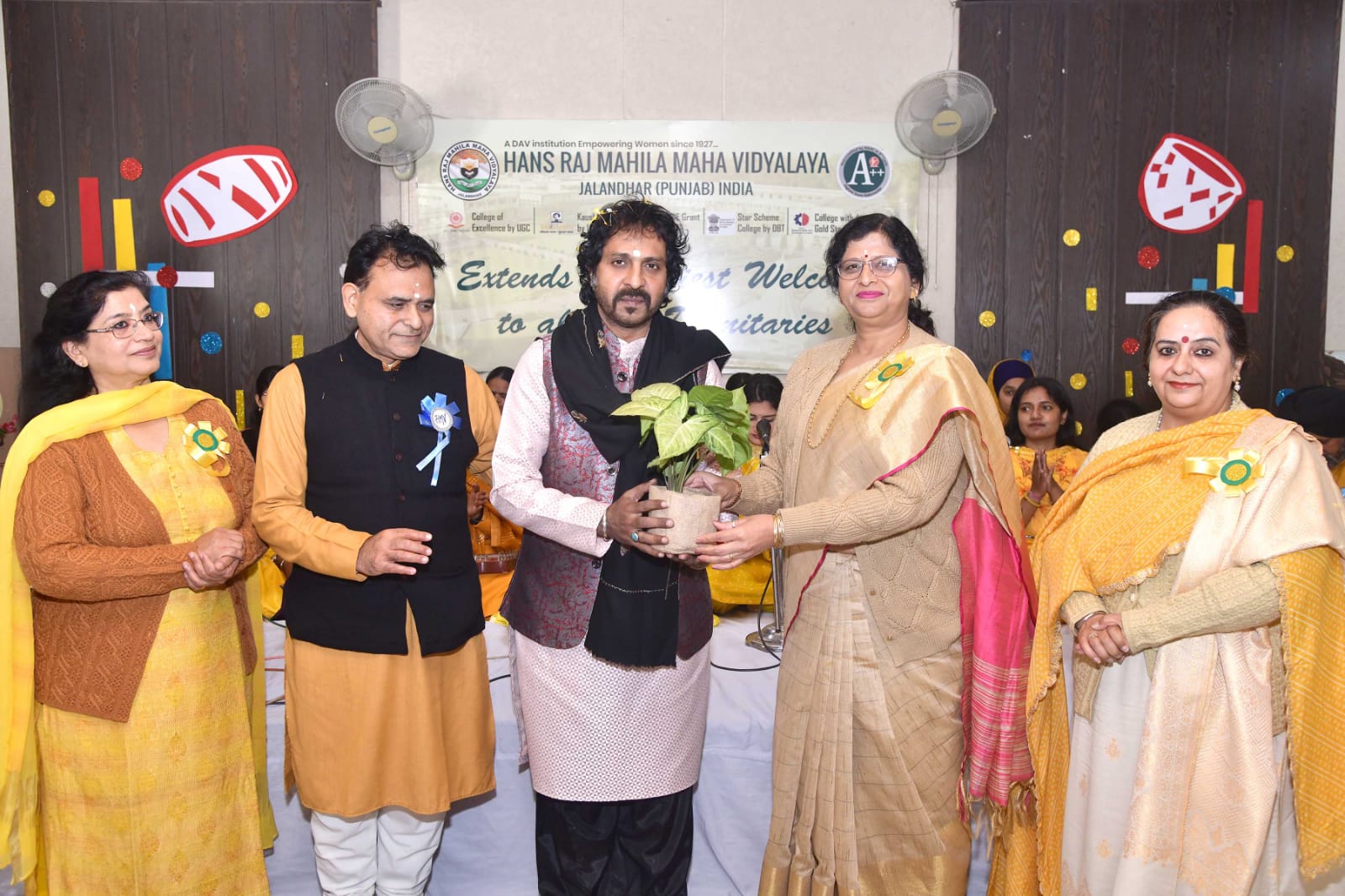 हंसराज महिला महाविद्यालय,जालंधर में प्राचार्या डॉ. श्रीमती एकता खोसला के दिशा-निर्देशन अधीन यूजिक विभाग द्वारा ‘आएं मनाएं बसंतÓ उत्सव का आयोजन किया गया। इस आयोजन में मुयातिथि के रूप में उस्ताद वजीर हुसैन खान साहब के शिष्य प्रसिद्ध सारंगी कलाकार उस्ताद गुलाम अली खान साहब तथा आल इंडिया रेडियो से श्री मनजीत सिंह और सुश्री कमलेश, अनहद स्टूडियो से श्री सुखदीप, सुश्री कुलविंदर, सुश्री अनु, सुश्री मनजीत, सुश्री सुखप्रीत, लेखक श्री अरिंदर सिंह, पंडित रमाकांत, श्री कालेराम तथा श्री तिलकराज विशेष अतिथि के रूप में उपस्थित रहे। प्राचार्या डॉ. एकता खोसला ने सभी गणमान्य अतिथियों का ग्रीन प्लांटर भेंट कर हार्दिक स्वागत किया। उन्होंने इस आयोजन के लिए यूजिक विभाग की सराहना की तथा सभी को बसंत उत्सव की शुभकामनाएं दी। उन्होंने कहा कि भारतीय संस्कृति में संगीत केवल एक कला का रूप नहीं है बल्कि एक शक्तिशाली माध्यम है जो गहरे आध्यात्मिक संबंध बनाने में मदद करता है। उन्होंने कहा कि ऐसे कार्यक्रम छात्राओं को संगीत की गहराईयों से जोड़ने का कार्य करते हैं। कार्यक्रम में यूजिक विभाग की छात्राओं ने सरस्वती वंदना प्रस्तुत की जिससे पूरा वातावरण भक्तिमय और सकारात्मक ऊर्जा से परिपूर्ण हो गया। उस्ताद गुलाम अली खान साहब ने सारंगी की मधुर धुनों के साथ श्रोताओं को मंत्रमुग्ध किया और कार्यक्रम को यादगार बना दिया। दर्शकों ने खान साहब के मनमोहन प्रस्तुति का भरपूर आनंद लिया। यूजिक विभाग के सदस्यों विभागाध्यक्ष डॉ. प्रेम सागर, डॉ. गुंजन कपूर, सुश्री दृष्टि, श्री प्रद्युमन, श्री सनी, श्री जसमेल, श्री नारायण (रिटा.) भी उपस्थित थे जिन्होंने कार्यक्रम के आयोजन में अपना बहुमूल्य सहयोग दिया। कार्यक्रम का आयोजन डॉ. आशमीन कौर, श्रीमती रितु बजाज, डॉ. रमा शर्मा द्वारा किया गया। डॉ. प्रेम सागर ने सभी का धन्यवाद किया। कार्यक्रम के अंत में सभी को प्रसाद वितरित किया गया। यह कार्यक्रम समृद्ध सांस्कृतिक उत्सव के रूप में अविस्मरणीय रहा।