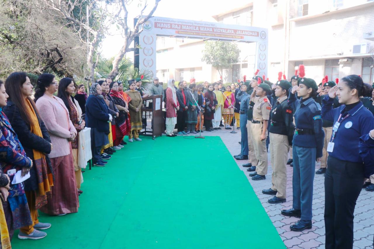 हंस राज महिला महाविद्यालय में प्राचार्या डॉ. (श्रीमती) एकता खोसला के कुशल मार्गदर्शन में नेताजी सुभाष चंद्र बोस की जयंती मनाने के लिए बहुत श्रद्धा और देशभक्ति की भावना के साथ पराक्रम दिवस का आयोजन किया गया। ए.एन.ओ. सोनिया महिंदरू और सी.टी.ओ. पूर्णिमा शर्मा के नेतृत्व में एन.सी.सी. आर्मी और एयर विंग के कैडेट्स ने नेताजी के अदय साहस और नेतृत्व के प्रति समान और प्रशंसा के प्रतीक के रूप में उन्हें औपचारिक सलामी दी। प्रिंसिपल डॉ. खोसला ने छात्रों को संबोधित करते हुए उन्हें नेताजी द्वारा दिखाए गए साहस, अनुशासन और निस्वार्थ सेवा के मूल्यों को अपनाने के लिए प्रेरित किया। उन्होंने कहा कि युवाओं को नेताजी सुभाष चंद्र बोस के आदर्शों से प्रेरित होकर, अपने अंदर देशभक्ति की गहरी भावना और राष्ट्र निर्माण के प्रति प्रतिबद्धता के साथ, एक विकसित भारत की ओर दृढ़ संकल्प के साथ आगे बढ़ना चाहिए। मंच का संचालन हेड गर्ल गुरलीन और असिस्टैंट हैड गर्ल पाहुल जब्बल ने किया। कैडेट शरणजीत कौर (आर्मी विंग) ने नेता जी के विचारों पर आधारित भाषण दिया, जबकि कैडेट श्रुति चौधरी (एयर विंग) और स्टूडेंट काउंसिल की मुस्कान ने नेताजी को श्रद्धांजलि देते हुए कविताएँ पढ़ीं। संगीत विभाग ने डॉ. प्रेम सागर और डॉ. गुंजन के नेतृत्व में एक भावपूर्ण गीत प्रस्तुत किया। कैडेट्स ने पराक्रम दिवस के महत्व को उजागर करने वाले पोस्टर प्रदर्शित किए। कार्यक्रम में एन.सी.सी. कैडेट्स, स्टूडेंट काउंसिल के सदस्यों, फैकल्टी, गैर-शिक्षण कर्मचारियों और छात्रों ने सक्रिय रूप से भाग लिया।