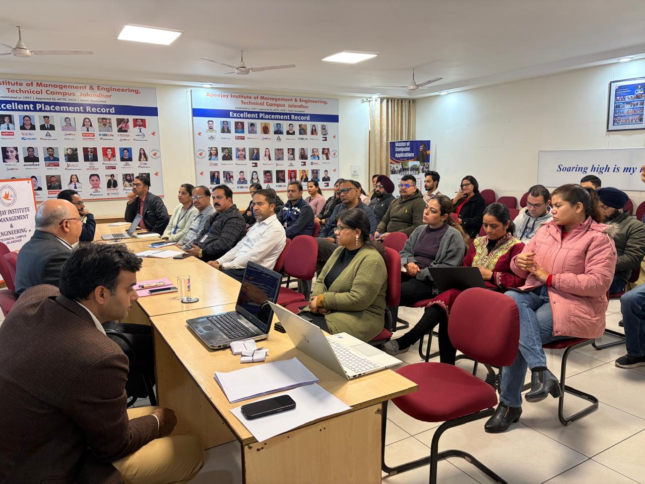 Apeejay Institute of Management & Engineering Technical Campus, जालंधर ने संकाय सदस्यों (faculty members) के बीच सहयोगात्मक कार्यप्रणाली और रणनीतिक दूरदर्शिता को सुदृढ़ करने के उद्देश्य से टीमवर्क और रणनीतिक सोच (Teamwork and Strategic Thinking) विषय पर एक फैकल्टी डेवलपमेंट प्रोग्राम (FDP) (Faculty Development Program FDP) का आयोजन किया।