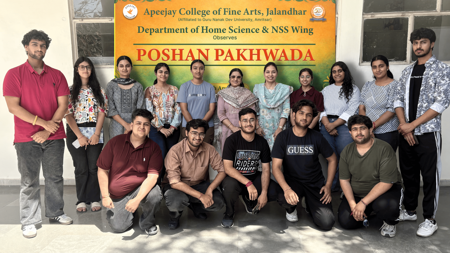 एपीजे कॉलेज ऑफ़ फाइन आर्ट्स,जालंधर में होम साइंस विभाग और एनएसएस विंग ने संयुक्त रूप में पोषण पखवाड़ा का आयोजन किया। इस पोषण पखवाड़े का इस बार का विषय था, ‘मां और शिशु पोषण और आंखों की देखभाल’। भारत में आज भी महिलाओं और शिशुओं में खून की कमी और कुपोषण की गंभीर समस्या देखी गई है। माॅं और उनके शिशुओं में यह समस्या भविष्य में कई गंभीर बीमारियों और समस्याओं को जन्म देती है। यह कमजोर पीढ़ी भविष्य में देश को कमजोर बना सकती है। साथ ही हर वर्ग के हर आयु के लोगों में मोबाइल, लैपटॉप, टीवी आदि का प्रयोग स्क्रीन टाइम को नुकसान देय स्तर पर ले आया है। इन्हीं बातों को ध्यान में रखते हुए होम साइंस विभाग की अध्यक्ष डॉ. मोनिका आनंद, ने विद्यार्थियों को संबोधन किया और अपने स्क्रीन टाइम को कम करने के सुझाव दिए। इसके अतिरिक्त उन्होंने विद्यार्थियों को 20-20-20 के रूल को भी समझाया, जिससे आंखों की सेहत बरकरार रखी जा सके। उन्होंने कॉलेज के विद्यार्थियों को खून की कमी को दूर करने के लिए फल और सब्जियों को अपने प्रतिदिन के आहार में शामिल करने की सलाह भी दी।
