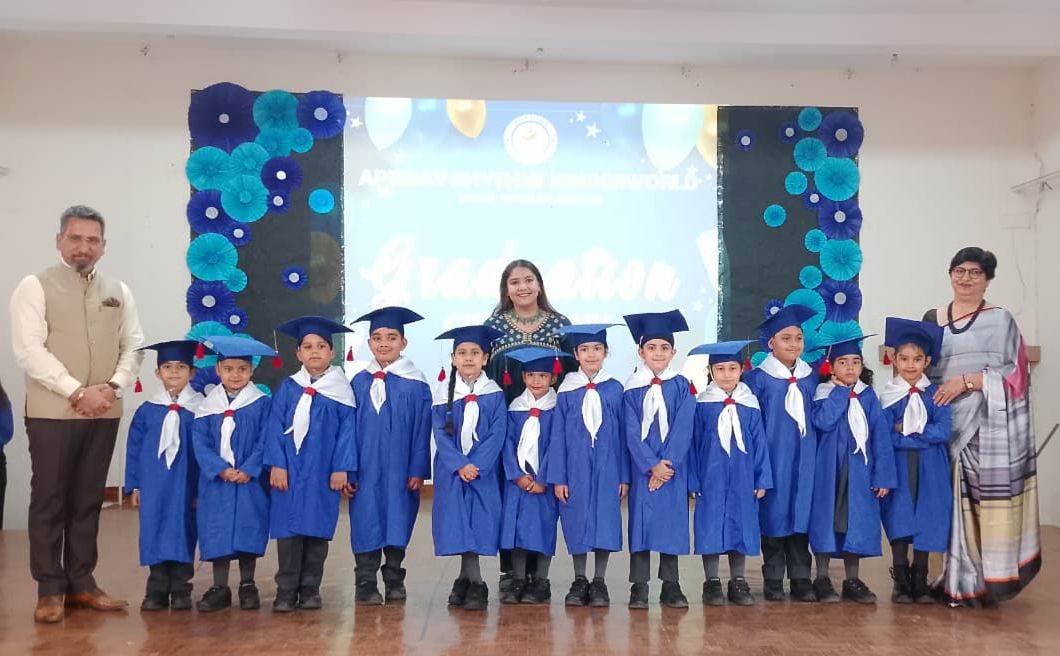 एपीजे एजुकेशन सोसाइटी की प्रेसिडेंट श्रीमती सुषमा पॉल बर्लिया जी के प्रेरणादायी नेतृत्व में एपीजे रिदम्स किंडरवर्ल्ड, मॉडल टाउन में 7 मार्च 2026 को कक्षा यू.के.जी के विद्यार्थियों के लिए ‘ग्रेजुएशन सेरेमनी 2026 – यंग अचीवर्स’ का आयोजन बड़े हर्षोल्लास और उत्साह के साथ किया गया। यह अवसर यू.के.जी के विद्यार्थियों के लिए विशेष और यादगार रहा, क्योंकि वे अपनी स्कूली शिक्षा के अगले चरण में प्रवेश करने जा रहे हैं।ग्रेजुएशन गाउन और कैप पहने छोटे-छोटे विद्यार्थी बड़े गर्व के साथ स्कूल के मुख्य द्वार से मार्च पास्ट करते हुए समारोह स्थल तक पहुँचे। कार्यक्रम का शुभारंभ विद्यालय के प्रधानाचार्य डॉ. राजेश चंदेल जी द्वारा ज्योति प्रज्ज्वलित कर किया गया।समारोह के दौरान एल.के.जी के विद्यार्थियों ने अपने सीनियर्स के सम्मान में मनमोहक नृत्य प्रस्तुति दी, जिसने उपस्थित सभी दर्शकों का मन मोह लिया। ग्रेजुएट होने वाले विद्यार्थियों ने अपने अध्यापकों और अभिभावकों के प्रति आभार व्यक्त किया। यू.के.जी के विद्यार्थियों के अभिभावकों ने भी विद्यालय के प्रति अपनी सकारात्मक प्रतिक्रियाएँ व्यक्त करते हुए रिदम्स किंडरवर्ल्ड में अपने बच्चों के सुखद और समृद्ध अनुभवों को साझा किया।इस अवसर पर छोटे ग्रेजुएट्स को ग्रेजुएशन स्क्रॉल प्रदान किए गए, जो उनकी उपलब्धियों और उनकी शैक्षणिक यात्रा में अगले चरण के लिए उनकी तैयारी का प्रतीक थे। यू.के.जी के विद्यार्थियों ने अपने शिक्षकों और अभिभावकों को समर्पित एक शानदार नृत्य प्रस्तुति देकर दर्शकों को मंत्रमुग्ध कर दिया।