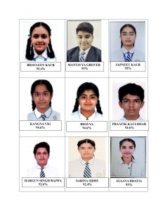 भवलीन कौर (95.4%), मंतव्य (95%), जपनीत कौर (95%), कंगना विग (94.6%), भव्या (94.6%), प्रातिक (93.6%), हरगुन (92.6), सरिना (92.4%), अनाया (92%), अजितेश (91.4%) , कनन (91.2%), अक्षित (90.8%), उद्धव (90.6%) , अलका सिक्का (90.4%)
