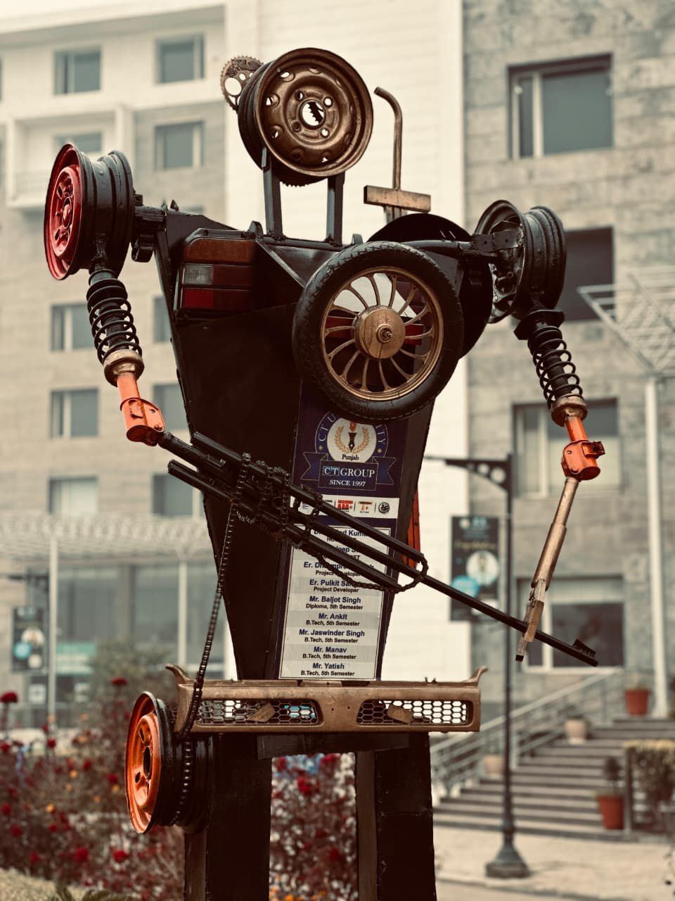 सी टी विश्वविद्यालय ने एक बार फिर नवाचार और अनुभवात्मक शिक्षा के प्रति अपनी प्रतिबद्धता को सिद्ध किया है। विश्वविद्यालय के छात्रों ने पुरानी मारुति 800 कार के कबाड़ से 10 फीट ऊँचा एक विशाल रोबोट सफलतापूर्वक डिज़ाइन कर तैयार किया है। यह अनूठा निर्माण इस बात का सशक्त उदाहरण है कि किस प्रकार अनुपयोगी वस्तुओं को रचनात्मकता, सतत विकास और अभियांत्रिकी कौशल के प्रतीक में बदला जा सकता है।