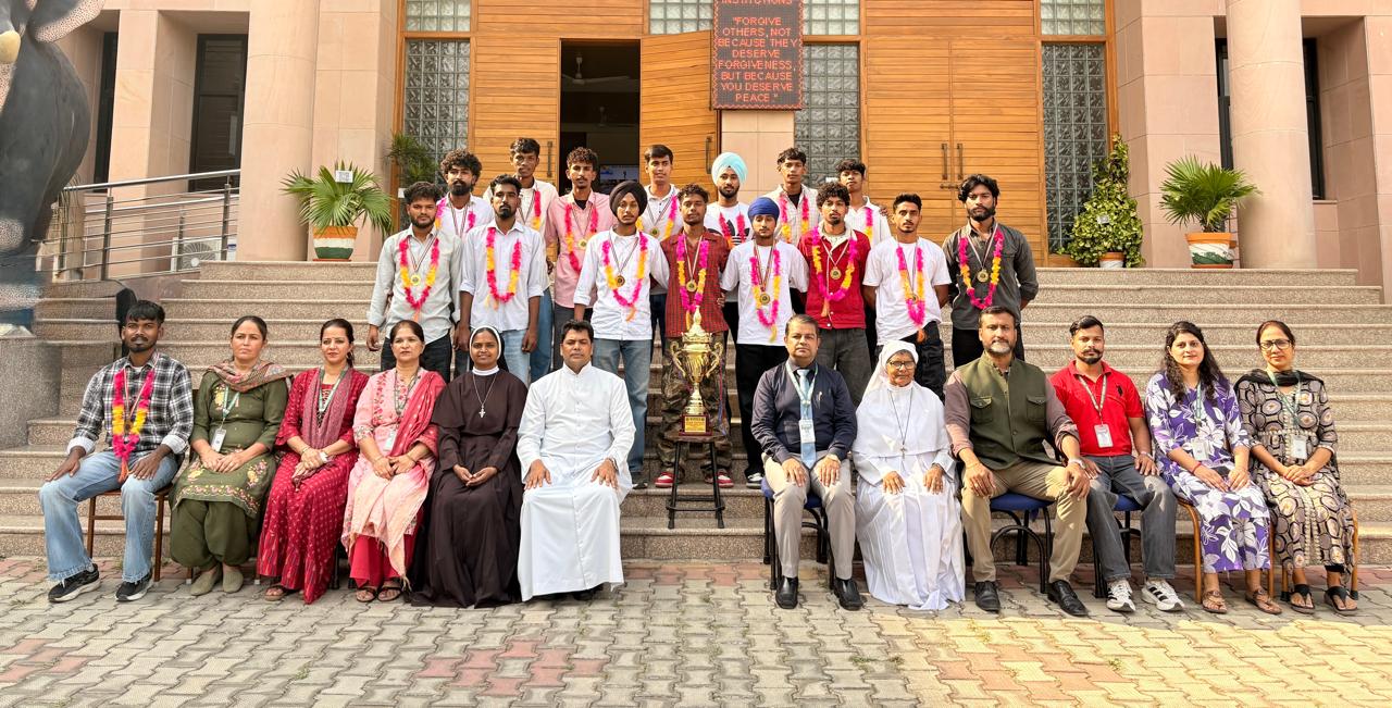 ट्रिनिटी कॉलेज, जालंधर के छात्र खिलाड़ियों ने गुरु नानक देव विश्वविद्यालय, अमृतसर द्वारा आयोजित अंतर-कॉलेज फुटबॉल लीग प्रतियोगिता में शानदार प्रदर्शन करते हुए स्वर्ण पदक जीता। ट्रिनिटी कॉलेज की फुटबॉल टीम ने पहला मैच गुरु नानक देव विश्वविद्यालय, रीजनल केंपस, जालंधर की टीम के खिलाफ जीता। दूसरा मैच बी.यू.सी बटाला की टीम के खिलाफ और तीसरा मैच एस.बी.डी.एस खालसा कॉलेज डुमेली के खिलाफ जीतकर स्वर्ण पदक जीता, और ट्रिनिटी कॉलेज तथा अपने अभिभावकों का नाम रोशन हुआ। कॉलेज प्रबंधन ने इन छात्र खिलाड़ियों को सम्मानित किया। इस अवसर पर ट्रिनिटी ग्रुप ऑफ इंस्टीट्यूट्स के निदेशक रेव फादर पीटर कावामपुरम जी, ट्रिनिटी कॉलेज के सहायक निदेशक रेव फादर एंथनी जोसेफ जी, ट्रिनिटी कॉलेज के प्रिंसिपल डॉ. अजय पराशर, रेव सिस्टर रीटा, रेव सिस्टर प्रेमा, रेव सिस्टर एल्सीना, छात्र कल्याण प्रभारी असिस्टेंट प्रोफेसर निधि शर्मा, खेल विभागाध्यक्ष असिस्टेंट प्रोफेसर करणवीर द्विवेदी, श्री जतिन, डॉ. इंद्रप्रीत कौर, असिस्टेंट प्रोफेसर राजिंदर कौर, डॉ. नीतू खन्ना, असिस्टेंट प्रोफेसर सानिया शर्मा तथा सभी शिक्षकों ने इन प्रतिभाशाली छात्र खिलाड़ियों को सम्मानित किया।