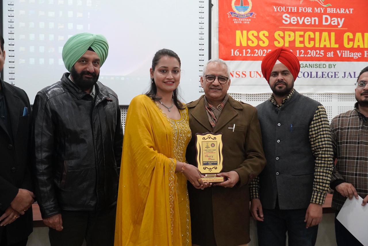 अपने समापन भाषण में डॉ. राजेश कुमार ने इस बात पर बल दिया कि एनएसएस केवल एक कार्यक्रम नहीं बल्कि सेवा, अनुशासन और सामाजिक प्रतिबद्धता पर आधारित जीवन का एक दर्शन है। उन्होंने शिविर के दौरान सामुदायिक सेवा में स्वयंसेवकों के निष्ठापूर्ण योगदान की सराहना की। इस सत्र में स्वयंसेवकों को उनके सराहनीय योगदान के लिए पुरस्कार भी वितरित किए गए। भवनीत सिंह को सर्वश्रेष्ठ स्वयंसेवक (लड़के) और नवनीत कौर को सर्वश्रेष्ठ स्वयंसेवक (लड़की) का पुरस्कार मिला।