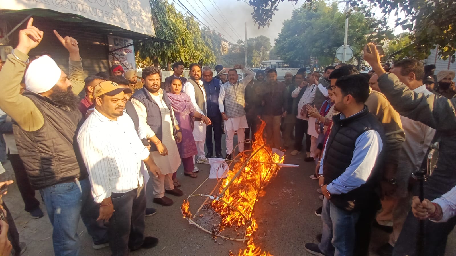 जालंधर ( )भारतीय जनता पार्टी युवा मोर्चा अध्यक्ष पंकज जुल्का की अध्यक्षता में सैंकड़ों भाजपा युवा मोर्चा कार्यकर्ताओं ने अंतरराष्ट्रीय ए.आई समिट में कांग्रेस के कार्यकर्ताओं द्वारा विरोध प्रदर्शन के खिलाफ स्थानीय कांग्रेस भवन के बाहर पुतला फूंक प्रदर्शन किया।जिसमे सैकड़ों की गिनती मे युवा भाजपाइयों,वरिष्ठ नेताओ समेत सभी मोर्चा,सैलो के लोग शामिल हुए। इसमें विशेष रूप से भाजपा जिलाध्यक्ष सुशील शर्मा,पूर्व सीपीएस और प्रदेश भाजपा उपाध्यक्ष केडी भंडारी, पूर्व विधायक शीतल अंगुराल, भाजपा जिला महामंत्री अशोक सरीन हिक्की,राजेश कपूर, अमरजीत सिंह गोल्डी आदि उपस्थित थे।इस अवसर पर भाजपा कार्यकर्ताओं में रोष चरम सीमा पर था और उन्होंने राहुल गांधी मुर्दाबाद, कांग्रेस पार्टी मुर्दाबाद के जमकर नारे लगाए।इस अवसर पर सुशील शर्मा ने कहा कि लगातार अपनी हार से बौखलाए राहुल गांधी और कांग्रेस सभी संवैधानिक सीमाएं भूल चुके हैं और निरंतर अमर्यादित कृत्यों को अंजाम दे रहे है। उन्होंने कहा कि एक और भारत सारे विश्व का अग्रणी देश बनने जा रहा है और ऐसे महत्वपूर्ण और देश के विकास को रफ़्तार देने वाले कार्यक्रम के दौरान युवा कांग्रेस के कार्यकर्ताओं द्वारा विरोध प्रदर्शन करना अत्यंत दुर्भाग्यपूर्ण और शर्मनाक है। उन्होंने कहा कि इससे भारत की अंतर्राष्ट्रीय स्तर पर गरिमा को नुकसान पहुंचा है।इस मौके केडी भंडारी ने कहा कि जहां अन्तर्राष्ट्रीय मंच पर भारत वैश्विक स्तर पर अपने कुशल नेतृत्व को प्रस्तुत कर रहा था वहीं उसी मंच पर युवा कांग्रेस के कार्यकर्ताओं द्वारा आकर विरोध प्रदर्शन करना न केवल अनुचित बल्कि अस्वीकार्य है।उन्होंने कहा कि यह कांग्रेसियों का राष्ट्र विरोधी कृत्य है।इस मौके शीतल अंगुराल ने कहा कि कांग्रेसी कार्यकर्ताओं का विरोध पार्टी की राष्ट्र विरोधी नीतियों को जगजाहिर करता है। उन्होंने कहा कि उनका कार्यक्रम में आकर विरोध करना भारत की अंतर्राष्ट्रीय प्रतिष्ठा को आघात पहुंचाता है।इस मौके पंकज जुल्का ने कहा कि कांग्रेस ने आज़ादी के बाद देश में जमकर लूट की है और जब देश आर्थिक रूप से संपन्नता की राह पर आगे बढ़ रहा है उसी रास्ते में कांग्रेसियों की देश विरोधी सोच अंतर्राष्ट्रीय मंच पर देखने को मिली है।इस मौके भाजपा युवा मोर्चा जिला महामंत्री सूर्या मिश्रा और वरुण दुबे, दीपाली बागड़िया, शालू,पंकज लुथरा, विकास शारदा, निखिल जोशी,चेतन,गौरव राय, दीक्षित नीरज, हरप्रीत सिंह, संतोष,अश्वनी गोंधी, प्रदीप खुल्लर,सोनू, सूरज, पार्थ दीक्षित,काका, मीता,विकास भारद्वाज, चंदन रखेजा, गुरमीत सिंह, आर के मल्होत्रा, मोहिंदर आदि उपस्थित थे।