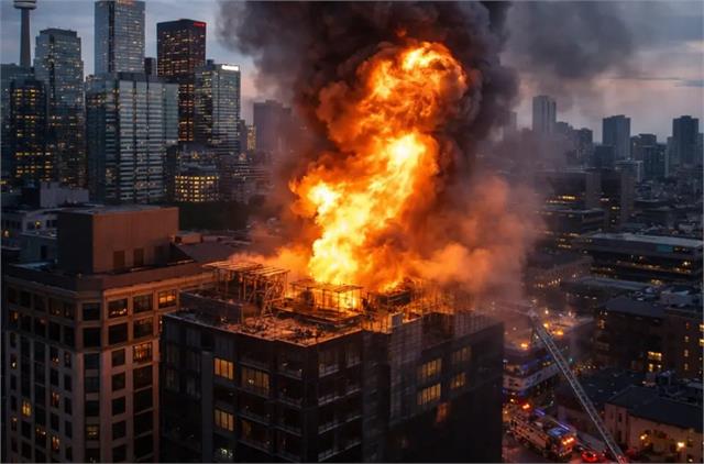 टोरंटो: कनाडा के टोरंटो शहर में 1 जोरदार धमाके और आग की घटना ने पूरे डाउनटाउन इलाके को हिला दिया। यह हादसा रिचमंड स्ट्रीट वेस्ट और जॉन स्ट्रीट के पास एक निर्माणाधीन व्यावसायिक इमारत की छत पर हुआ, जहां कई प्रोपेन गैस सिलेंडर फट गए।शाम करीब 6 बजे शुरू हुई इस घटना में अचानक तेज धमाकों की आवाजें गूंजने लगीं और कुछ ही मिनटों में आसमान में घना काला धुआं छा गया। आसपास मौजूद लोग, रेस्टोरेंट में बैठे ग्राहक और कामगार घबराकर बाहर निकल आए। कई प्रत्यक्षदर्शियों ने बताया कि धमाके इतने तेज थे कि आसपास की इमारतें तक हिल गईं।शुरुआत में यह एक सामान्य आग लगने की घटना लग रही थी, लेकिन जल्द ही हालात खतरनाक हो गए जब एक के बाद एक धमाके होने लगे। मौके पर पहुंची Toronto Fire Services की टीम ने बताया कि उन्हें 296 रिचमंड स्ट्रीट वेस्ट पर सूचना मिलने के लगभग 90 सेकंड के भीतर पहुंचना पड़ा।फायर अधिकारियों के अनुसार, छत पर लगी आग के बीच कम से कम तीन प्रोपेन सिलेंडर फट गए, जिससे आग और तेजी से फैल गई और लपटें ऊंचाई तक उठने लगीं। हेलीकॉप्टर से ली गई तस्वीरों में छत से निकलती विशाल आग की गेंद साफ दिखाई दी।
