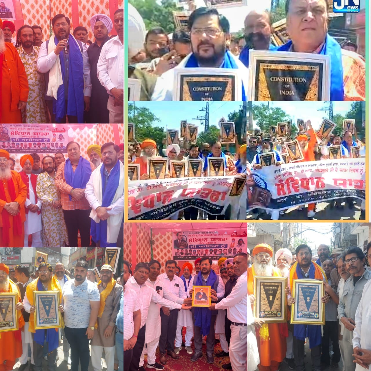 लुधियाना ( ए.जे ) डा. अबेंडकर यूथ सेना पंजाब के सैकड़ो कार्यकर्ताओं ने संविधान यात्रा निकाल कर लोगो को समानता और एकता का संदेश दिया.. विधानसभा सैंटरल में स्थनीय चीमां चौंक से डा. अबेंडकर जी के जनम दिवस को समर्पित संविधान यात्रा का आयोजन प्रधान राज कुमार हैप्पी, उपप्रधान अशवनी कुमार मकखन, सचिव पप्पु खान की अगवाई में निकाली गई जिसमें मुख्य अतिथि श्री चरण छोह गंगा श्री खुरालगढ़ साहिब से महान संत सुरिंदर दास जी और मुख्य अतिथि श्री राजेश बाघा जी पंजाब राज्य अनुसूचित जाति आयोग के पूर्व अध्यक्ष, भाजपा पंजाब के उपाध्यक्ष और ब्रिटिश रविदासिया हेरिटेज फाउंडेशन के अखिल भारतीय अध्यक्ष। , पासले वाली सरकार सांई जसवीर जी, पूर्व मंत्री भारत भूषण आशु, विधानसभा सैंटरल से श्री गुरदेव शर्मा देवी जी कैशियर भारतीय जनता पार्टी पंजाब, जसबीर सिंह जस्सी प्रधान बहुजन समाज पार्टी, गुरदेव देबी, पूर्व पार्षद राजा, नवनीत घायल, मुखर रूप से पहुंचे अपने संबोधन में राजेश बाघा ने बाताया कि भारतीय संविधान समाज में एकता एंव समानता बनाता है और आपसी भाईचारक सांझ को मजबूत बनाता है इस अवसर पर सुरिंदर कौर कैंथ प्रधान महिला कांग्रेस कमेटी,फिरोज मास्टर, सद्दाम सिद्दिकी, बबलू खान, राजिंदर कैंथ, कपिल कुमार, काला बसरा, राहुल कुमार, गगन बरवाले,रूचि पाहुजा, व अनय मोजूद थे