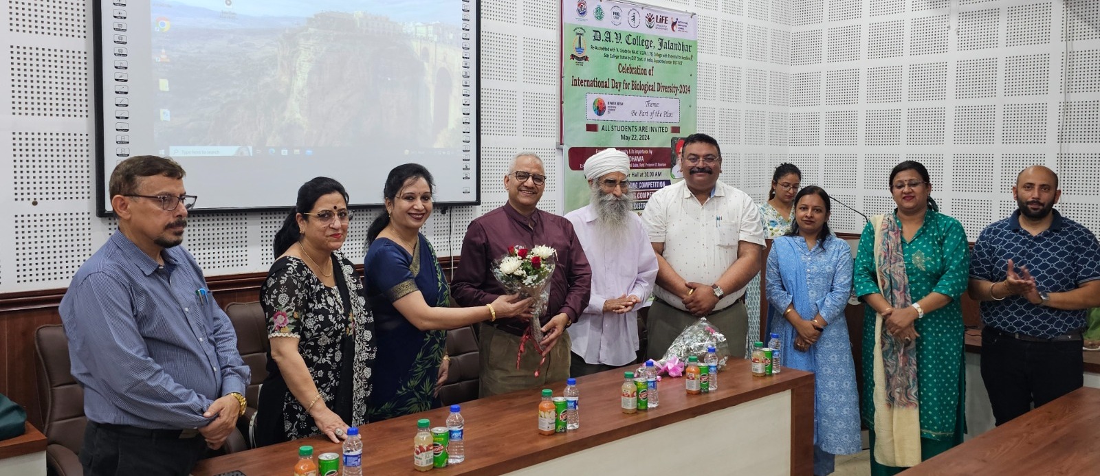 पंजाब जैव विविधता बोर्ड के सहयोग से डार्विन जूलॉजिकल सोसाइटी के तत्वावधान में, डीएवी कॉलेज, जालंधर में पीजी जूलॉजी विभाग के सहयोग से डीएवी कॉलेजिएट सीनियर सेकेंडरी स्कूल द्वारा अंतर्राष्ट्रीय जैविक विविधता दिवस मनाया गया। जूलॉजी विभागाध्यक्ष प्रो पुनित पुरी द्वारा इस आयोजन के प्रायोजन के लिए भारत सरकार के राष्ट्रीय जैव विविधता प्राधिकरण और पंजाब विज्ञान और प्रौद्योगिकी विभाग की सराहना की गई। इस कार्यक्रम में पोस्टर मेकिंग, कोलाज मेकिंग, विशेषज्ञ वार्ता और पक्षियों के लिए पानी के कटोरे के वितरण जैसी कई गतिविधियाँ शामिल थी।