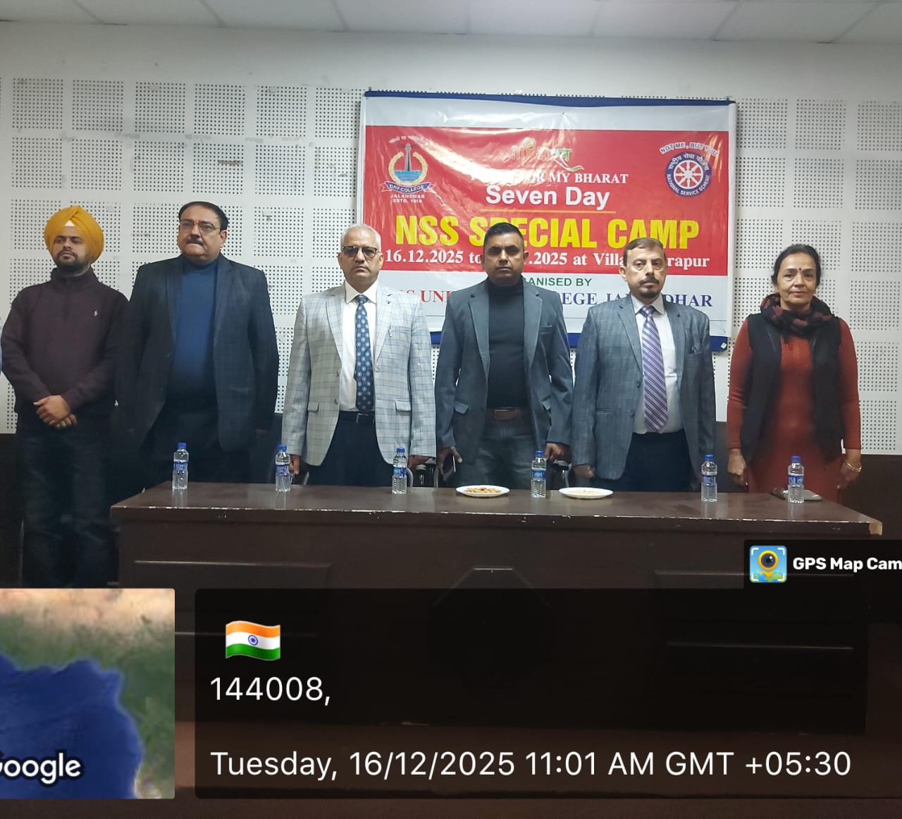 डी.ए.वी. कॉलेज, जालंधर की एनएसएस इकाई ने हीरापुर गांव में 16 दिसंबर, 2025 से 22 दिसंबर, 2025 तक आयोजित होने वाले सात दिवसीय एनएसएस विशेष शिविर का बड़े उत्साह और उमंग के साथ उद्घाटन किया। उद्घाटन सत्र 16 दिसंबर, 2025 को पंजाब युवा सेवा विभाग के सहायक निदेशक श्री रवि दारा की गरिमामय उपस्थिति में आयोजित किया गया, जिन्होंने मुख्य अतिथि के रूप में इस अवसर की शोभा बढ़ाई।