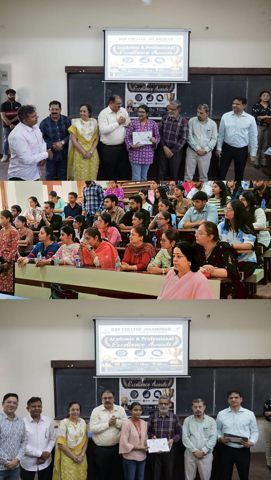 डी.ए.वी. कॉलेज, जालंधर के स्नातकोत्तर वाणिज्य एवं प्रबंधन विभाग द्वारा ‘शैक्षणिक एवं व्यावसायिक उत्कृष्टता पुरस्कार समारोह’ का आयोजन किया गया। इस समारोह का उद्देश्य विद्यार्थियों की शैक्षणिक तथा व्यावसायिक क्षेत्रों में प्राप्त विशिष्ट उपलब्धियों का सम्मान करना था। यह कार्यक्रम विद्यार्थियों के परिश्रम, दृढ़ संकल्प एवं उत्कृष्टता की निरंतर साधना को पहचान देने वाला एक महत्वपूर्ण मंच सिद्ध हुआ तथा संस्थान की शैक्षणिक उन्नति के प्रति प्रतिबद्धता को भी और अधिक सुदृढ़ करता है।