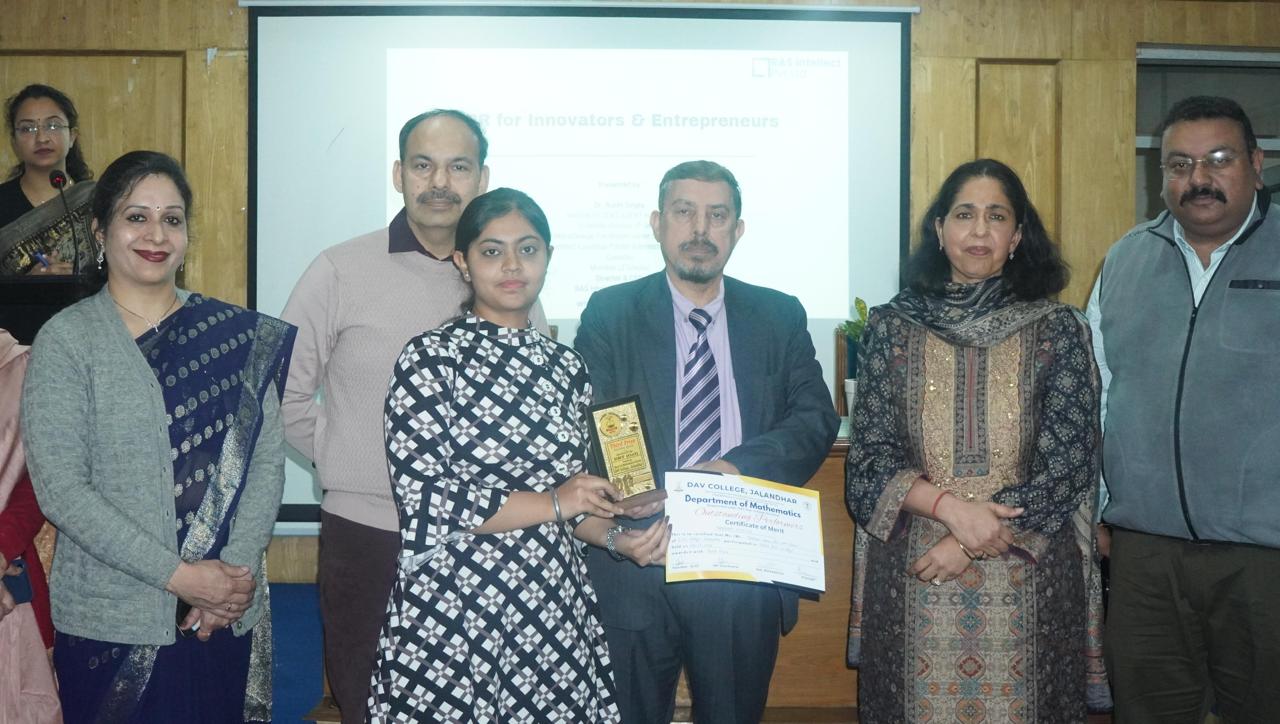 मैथमेटिक्स डिपार्टमेंट ने इंस्टीट्यूशन की इनोवेशन काउंसिल (IIC) और डी.ए.वी.कॉलेज के रिसर्च एंड डेवलपमेंट सेल के साथ मिलकर डी.बी.टी. स्टार कॉलेज स्कीम के तहत “इनोवेटर्स और एंटरप्रेन्योर्स के लिए आई.पी.आर. ” पर एक अवेयरनेस सेशन ऑर्गनाइज़ किया।
