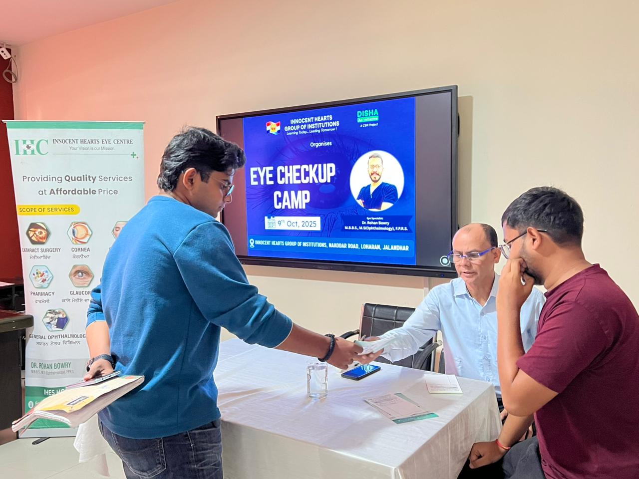 इनोसेंट हार्ट्स ग्रुप ऑफ़ इंस्टीट्यूशन्स, लोहारां में यह शिविर डॉ. रोहन बौरी (एम.बी.बी.एस., एम.एस.ऑप्थल्मोलॉजी, एफ.पी.आर.एस.), नेत्र विशेषज्ञ एवं डिप्टी डायरेक्टर – हेल्थ सर्विसेज, इनोसेंट हार्ट्स के मार्गदर्शन में आयोजित किया गया। इस शिविर में फैकल्टी मेंबर्स और विद्यार्थियों के लिए व्यापक नेत्र परीक्षण की व्यवस्था की गई, जिसमें दृष्टि संबंधी समस्याओं का शीघ्र पता लगाने और नियमित नेत्र जाँच को प्रोत्साहित करने पर ध्यान केंद्रित किया गया।