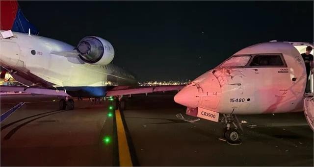 अमेरिका: अमेरिका के न्यूयॉर्क शहर में बुधवार की रात एक बड़ा विमान हादसा हो गया। लागार्डिया एयरपोर्ट पर पार्किंग के लिए बढ़ते समय डेल्टा एयरलाइंस के दो विमान आपस में टकरा गए। इस हादसे में दोनों फ्लाइट्स को काफी नुकसान पहुंचा है और एक व्यक्ति के घायल होने की खबर है। रिपोर्ट के अनुसार यह दुर्घटना तब हुई जब डेल्टा एयरलाइंस का एक विमान गेट की तरफ बढ़ रहा था। उसी समय लैंडिंग के बाद दूसरा विमान भी उसी गेट की तरफ आ गया। यह टक्कर इतनी ज़ोरदार थी कि एक विमान का पंख दूसरे विमान की नाक से टकरा गया। टक्कर के परिणामस्वरूप एक विमान का पंख टूटकर नीचे गिर गया। एयर ट्रैफिक कंट्रोल के ऑडियो के हवाले से बताया गया है कि पायलट ने स्थिति को सँभालने की कोशिश की थी लेकिन फिर भी हादसा हो गया। हादसे के बाद एक व्यक्ति घायल हो गया है जिसे उपचार के लिए भेजा गया है।