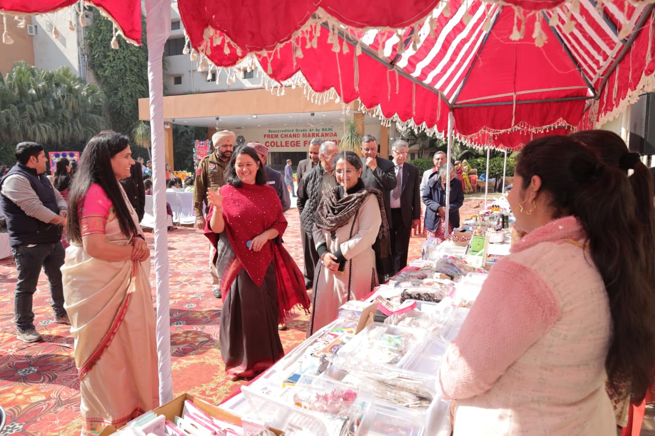फैशन डिजाइनिंग और कॉस्मेटोलॉजी विभाग के छात्रों ने ‘अर्न व्हाइल यू लर्न’ योजना के तहत हस्तनिर्मित शिल्प और आभूषणों के स्टॉल लगाकर सराहनीय उद्यमिता कौशल का प्रदर्शन किया। स्टेट बैंक ऑफ इंडिया, मंडी फेंटन गंज द्वारा लगाया गया एक अलग स्टॉल भी आगंतुकों के आकर्षण का केंद्र रहा।