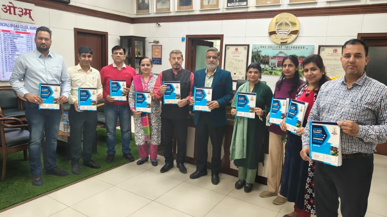 डी.ए.वी. कॉलेज, जालंधर के फिजिक्स डिपार्टमेंट ने प्राचार्य डॉ. अनूप कुमार के गाइडेंस में, प्रिंसिपल के ऑफिस में “थ्योरेटिकल और एक्सपेरिमेंटल फिजिक्स में फ्रंटियर्स पर दूसरा नेशनल कॉन्फ्रेंस” की प्रोसीडिंग्स को फॉर्मल तौर पर लॉन्च किया। इस अवसर पर मौजूद स्टाफ मेंबर्स में डॉ. कुॅंवर राजीव (विभागाध्यक्ष), डॉ. नवजीत, डॉ. शरणजीत, डॉ. रविंदर कौर (एडिटर) शामिल थे। कॉन्फ्रेंस का मकसद फिजिक्स के अलग-अलग एरिया में काम कर रहे पूरे भारत के एक्सपेरिमेंटलिस्ट और थ्योरिस्ट को एक साथ लाना था। इसने रिसर्चर्स को अपनी हालिया फाइंडिंग्स पेश करने और साइंटिफिक कम्युनिटी के अंदर एकेडमिक कोलेबोरेशन को मजबूत करने के लिए एक वैल्यूएबल फोरम दिया।