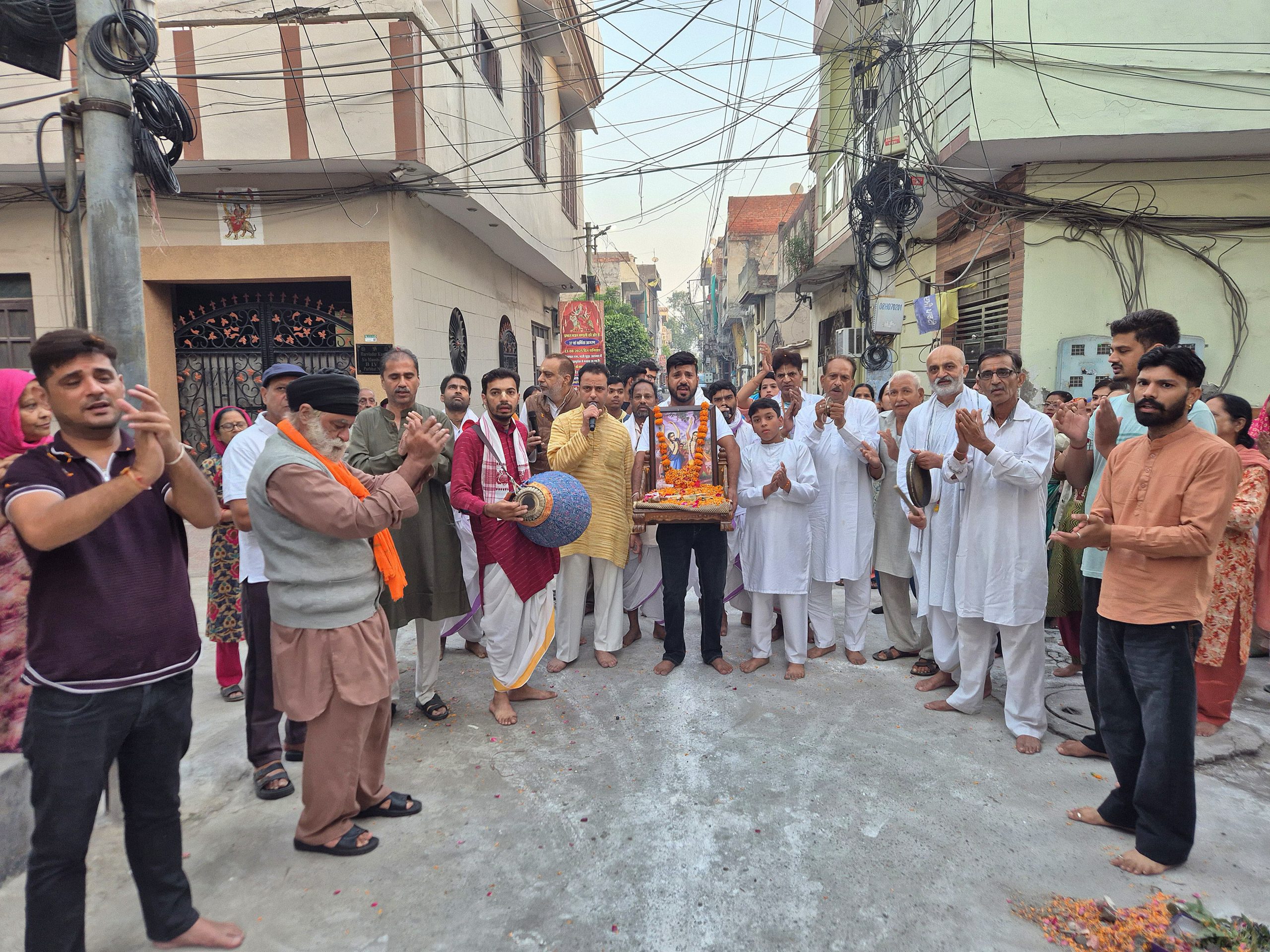 श्री गौर हरि संकीर्तन मंडल की ओर से प्रभात फेरी की श्रृंखला को आगे बढांते हुए प्रभात फेरी का आयोजन गाज़ी गुल्ला प्रभात नगर स्थित श्री करण कपूर के निवास स्थान से निकाली गई संकीर्तन का शुभारंभ सनी दुआ, गौरव कोहली, परवीन कोहली,विपुल सिसोदिया, राकेश मग्गो, आदित्य मग्गो, गोबिंद शर्मा,ने गुरू वंदना वैष्णव वंदना और पंचतत्व के साथ किया पूरा क्षेत्र हरिनाम के रस में ढोल रहा था मोहल्ला निवासियों ने पुष्प वर्षा से प्रभात फेरी का भव्य स्वागत किया और साथ ही जल पान की व्यवस्था भी की इस अवसर पर कुलदीप मेहता ने गोबिंद धन राधा, श्री राधा श्री राधा का संकीर्तन कर माहौल भक्ति मय बनाया नीरज कोहली ने जय गोबिंद जय गोपाल की उच्च ध्वनि से संकीर्तन किया सब तरफ हरि बोल, हरि बोल, हरि बोल ,हरि बोल, के जयकारे लग रहे थे ठाकुर जी की पालकी की सेवा कपूर ब्रदर्स ने की प्रभातफेरी भारत भूषण भारद्वाज, लवली, स्वीटी सिंह, राज कुमार राजू,सुभाष ग्रोवर, सुरिंदर भोला, भोला परिवार प्रकाश शर्मा राजेश अरोड़ा ,ओम प्रकाश शर्मा के निवास स्थान से होती हुई कपूर निवास पर सम्पन्न हुई इस प्रभात फेरी में श्री ब्रिज मोहन कपूर, वरुण कपूर, करण कपूर, राहुल सहगल, हनी भल्ला, रजत भल्ला, मुनीश कुमार, राज कुमार चौहान, परवीन कोहली, दीपक शर्मा, वासु नागपाल, हर्ष शर्मा, यांकिल्ल कोहली, तापस प्रभु, बॉबी मेहता, निमाई प्रभु, प्रवेश प्रभु, सागर प्रभु, आकाश मल्होत्रा, सलिल चौधरी, राजू खन्ना, आदित्य मग्गो, राकेश मग्गो, मुनीश कश्यप, वंदना कपूर, तृप्ता कपूर, नेहा कपूर, साक्षी भल्ला, रोज़ी अरोड़ा, रितु शर्मा, सीमा कोहली, प्रिय शर्मा, सीमा सहगल, राधा शर्मा, शान्ति देवी, रागिनी कत्याल, पूजा मेहता, सुनीता सिंह, के साथ साथ और भी भक्तजन इस प्रभातफेरी की शोभा बढ़ा रहे थे