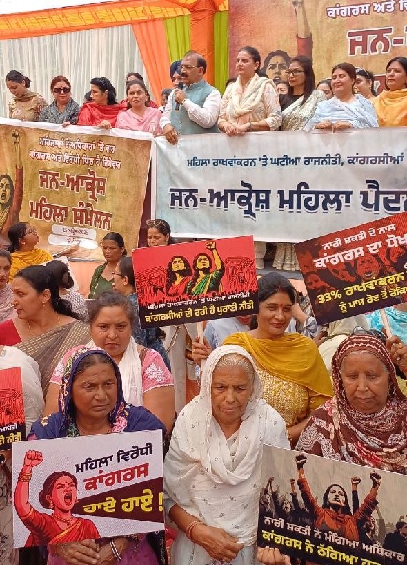 भाजपा महिला मोर्चा पंजाब की अध्यक्ष जय इंदर कौर ने महिला आरक्षण विधेयक को रोकने को लोकतंत्र के लिए “काला दिन” बताया। “कांग्रेस और आप ने हमेशा महिलाओं को केवल वोट बैंक के रूप में देखा है और उन्हें उनका उचित प्रतिनिधित्व देने में विफल रही हैं। काँग्रेस गठबंधन महिलाओं के बढ़ते राजनीतिक सशक्तिकरण से भयभीत नजर आता है। देशभर की महिलाएं इस अपमान का करारा जवाब देंगी,” उन्होंने कहा।