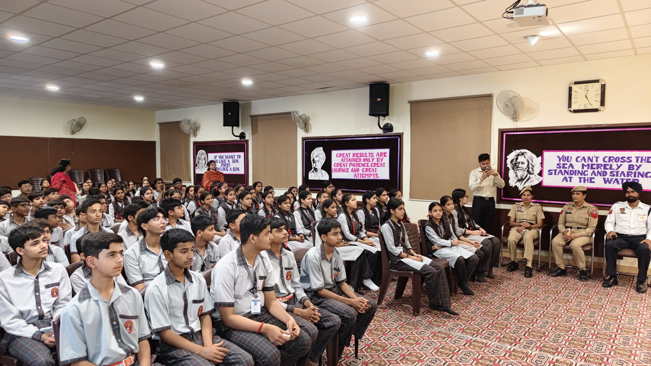 विद्यालय प्रबंधन तथा प्रधानाचार्या श्रीमती प्रवीण सैली की अध्यक्षता में ट्रैफ़िक-पुलिस विभाग,जालंधर द्वारा विद्यार्थियों के लिए आपातकालीन स्थितियों में हेल्पलाइन नंबरों की जानकारी देने और ट्रैफ़िक नियमों के पालन हेतु जागरूक करने के लिए विशेष कार्यक्रम का आयोजन किया गया। विद्यालय में ट्रैफ़िक-पुलिस के गणमान्य अधिकारी- सब-इंस्पेक्टर सरदार सतनाम सिंह, ASI सुखजीत, हेड कांस्टेबल श्री सुरिंदर कुमार, हेड कांस्टेबल श्रीमती जतिंदर कौर, श्री नीरज कुमार तथा श्रीमती संदीप कौर विशेष रूप से विद्यार्थियों के साथ रुबरू हुए। उन्होंने नौवीं तथा दसवीं कक्षा के विद्यार्थियों को आपातकालीन स्थितियों में सहायता पाने संबंधी विस्तार से जानकारी दी। उन्होंने विद्यार्थियों को अपने आसपास किसी भी असुरक्षा में की स्थिति में ‘चाइल्ड हेल्पलाइन नंबर’ के माध्यम से सहायता प्राप्त करने के लिए जागरूक किया। उन्होंने विद्यार्थियों से ट्रैफ़िक नियमों की स्वयं पालना करने के साथ-साथ अपने आसपास के लोगों को भी जागरूक करने की अपील की। अधिकारियों ने सड़क-सुरक्षा से संबंधित कई उदाहरणों के द्वारा उन्हें जागरूक किया। विद्यार्थियों ने भविष्य में ट्रैफ़िक-नियमों की पालना करने का वचन भी दिया।