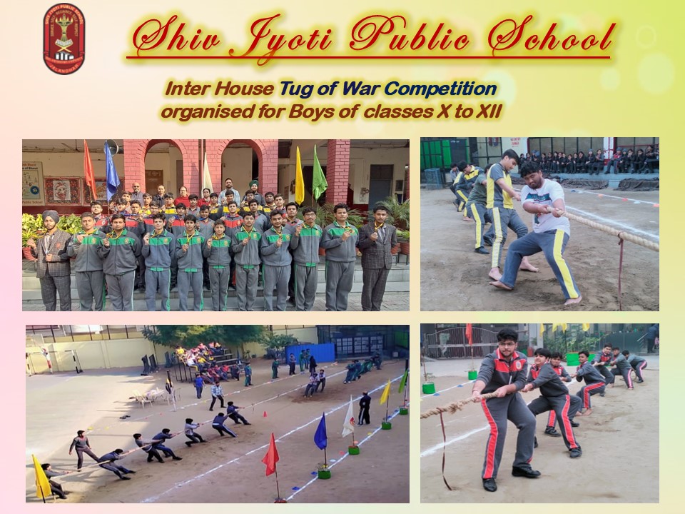 विभिन्न खेलकूद प्रतियोगिताओं का आयोजन किया जा रहा है। शारीरिक-शिक्षा विभाग के अध्यापकों द्वारा दसवीं से बारहवीं कक्षा की छात्रों के लिए ‘टग ऑफ़ वॉर’ प्रतियोगिता’ करवाई गई। श्रेष्ठ प्रदर्शन करने वाले छात्रों को चयनित करके इस प्रतियोगिता में भाग लेने का अवसर दिया गया। कीर्ति सदन के छात्रों ने रस्साकशी में विरोधी टीमों को परास्त करते हुए सर्वश्रेष्ठ प्रदर्शन के आधार पर प्रथम स्थान प्राप्त किया।