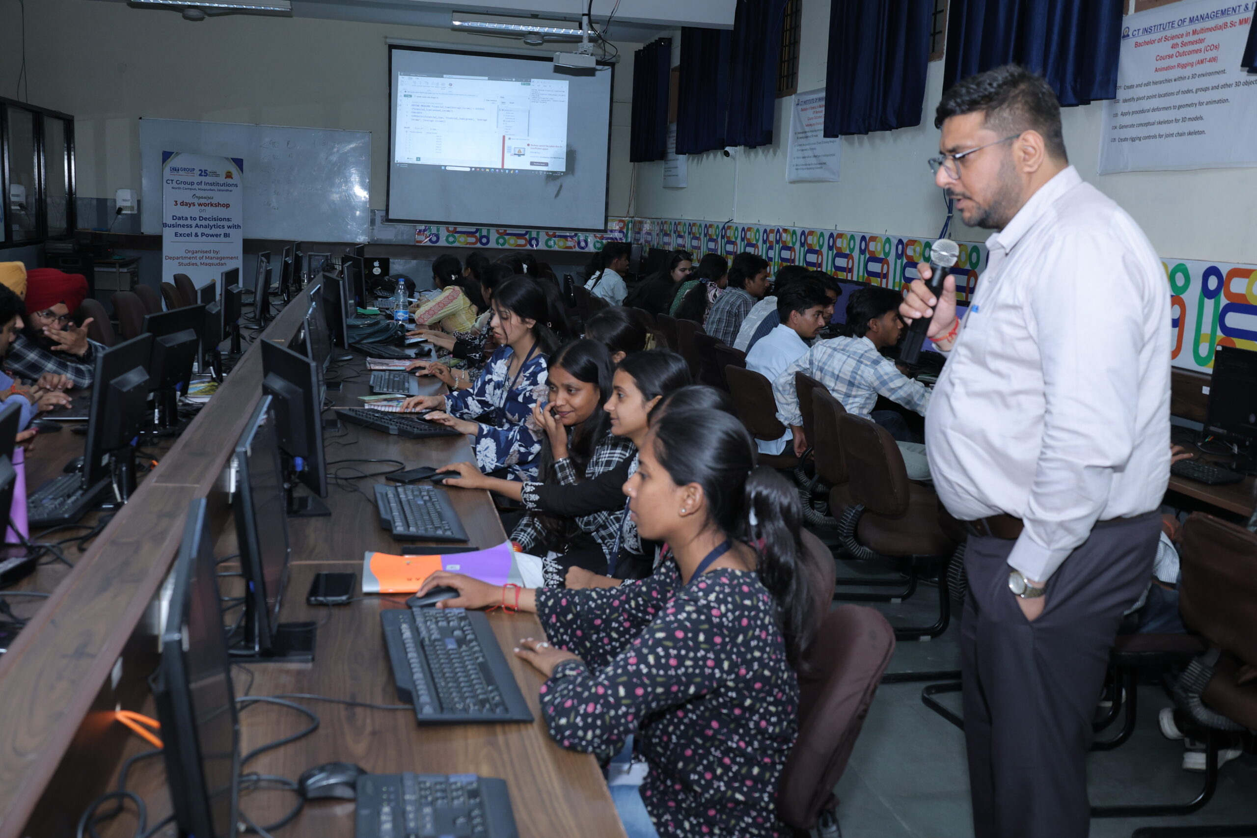 जालंधर: सीटी ग्रुप ऑफ इंस्टीट्यूशंस, नॉर्थ कैंपस, मकसूदां में प्रबंधन अध्ययन विभाग के रिसर्च क्लब के तत्वावधान में “डेटा टू डिसीजन: बिज़नेस एनालिटिक्स विद एक्सेल एंड पावर बीआई” विषय पर तीन दिवसीय कार्यशाला का सफल आयोजन किया गया। कार्यशाला के संसाधन व्यक्ति डॉ. विकास खुल्लर रहे, जो कि चितकारा यूनिवर्सिटी में प्रोफेसर हैं। उन्होंने अपने सत्रों के दौरान बिज़नेस एनालिटिक्स के क्षेत्र में व्यावहारिक एवं गहन ज्ञान साझा किया और वर्तमान डेटा-आधारित कारोबारी परिवेश में इसकी बढ़ती महत्ता को रेखांकित किया। कार्यशाला के प्रथम दिवस की शुरुआत बिज़नेस एनालिटिक्स के मूल सिद्धांतों से हुई, जिसमें प्रतिभागियों को माइक्रोसॉफ्ट एक्सेल के माध्यम से प्रायोगिक प्रशिक्षण दिया गया। छात्रों को डेटा का संगठन, शुद्धिकरण, वर्गीकरण, फिल्टरिंग तथा महत्वपूर्ण फॉर्मूलों एवं फंक्शनों के प्रयोग की जानकारी दी गई। इन सत्रों के माध्यम से प्रतिभागियों ने यह समझा कि किस प्रकार डेटा को सार्थक जानकारी में परिवर्तित कर प्रभावी निर्णय लिए जा सकते हैं। द्वितीय दिवस में उन्नत विश्लेषणात्मक उपकरण पावर बीआई पर विशेष ध्यान केंद्रित किया गया। विद्यार्थियों को डेटा आयात, रूपांतरण तथा इंटरैक्टिव डैशबोर्ड और रिपोर्ट तैयार करने का प्रशिक्षण दिया गया। यह सत्र अत्यंत रोचक और अनुप्रयोग आधारित रहा, जिसमें प्रतिभागियों ने वास्तविक समय के डेटा का विश्लेषण करते हुए आकर्षक प्रस्तुतीकरण तैयार किए।