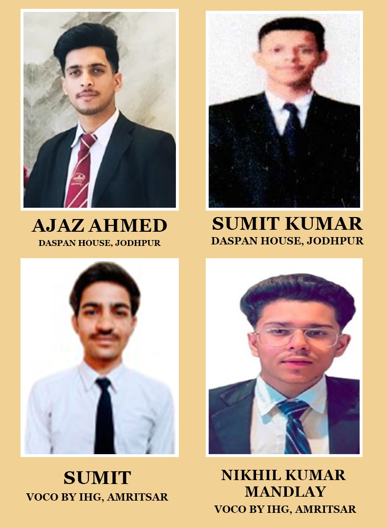 जालंधर : सेंट सोल्जर इंस्टीट्यूट ऑफ होटल मैनेजमेंट, ने अपने प्लेसमेंट रिकॉर्ड को और मजबूत किया है, जिसमें आखिरी सेमेस्टर के छात्र – निखिल कुमार माण्डले, सुमित का चयन वोको बाए आईएचजी (अमृतसर) में, एवं अजाज़ अहमद, एवं सुमित कुमार का चयन दसपन हाउस, जोधपुर में हुआ। स्टूडेंट्स को फूड प्रोडक्शन और हाउसकीपिंग डिपार्टमेंट में रिक्रूट किया गया है, जो उनके प्रोफेशनल करियर में एक महत्वपूर्ण मील पत्थर है। स्टूडेंट्स को बधाई देते हुए प्रिंसिपल श्रीमती कीर्ति शर्मा ने कहा कि यह उपलब्धि हमारे स्टूडेंट्स की लगन और इंस्टीट्यूट के क्वालिटी, इंडस्ट्री-ओरिएंटेड एजुकेशन देने पर लगातार फोकस को दिखाती है। विश्व स्तर पर मान्यता प्राप्त ब्रांड द्वारा सिलेक्शन हमारे स्टूडेंट्स की काबिलियत, प्रोफेशनलिज्म और जॉब के लिए तैयार होने को दिखाता है। ग्रुप वाइस चेयरपर्सन श्रीमती संगीता चोपड़ा ने सिलेक्टेड स्टूडेंट्स को शुभकामनाएं दीं और पढ़ने वाले विद्यार्थियों को उनसे प्रेरणा लेने के लिए प्रोत्साहित किया।