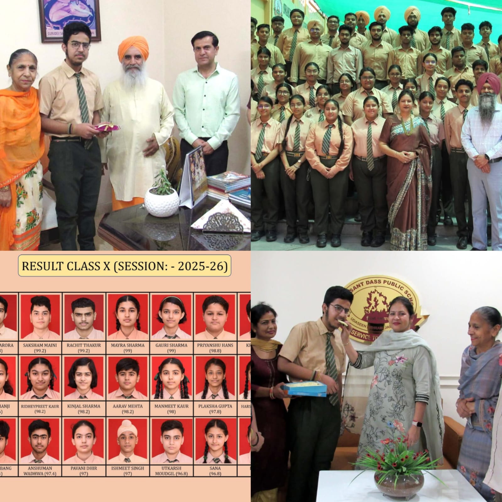 जालंधर के स्वामी संत दास पब्लिक स्कूल के विद्यार्थियों ने इस वर्ष आयोजित दसवीं की सीबीएसई बोर्ड परीक्षा में उत्कृष्ट प्रदर्शन कर विद्यालय का नाम रोशन किया। विद्यालय के छात्र हेमांग अरोड़ा ने 99.8% अंक प्राप्त कर जिले में प्रथम स्थान हासिल किया। रचित ठाकुर तथा सक्षम मैनी ने 99.2% अंक प्राप्त कर स्कूल में द्वितीय स्थान प्राप्त किया, जबकि मायरा शर्मा और गौरी शर्मा ने 99% अंक प्राप्त कर तृतीय स्थान प्राप्त किया।