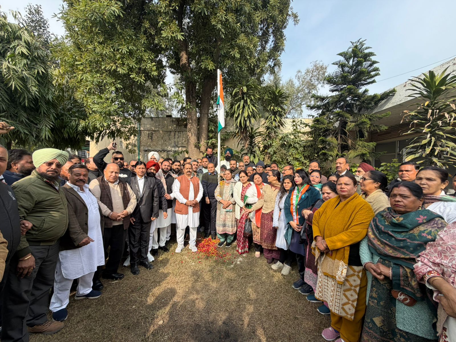 ਜਲੰਧਰ :- ਕਾਂਗਰਸ ਭਵਨ ਵਿਖੇ ਗਣਤੰਤਰ ਦਿਵਸ ਦੇ ਸ਼ੁੱਭ ਮੌਕੇ ਤੇ ਭਾਰਤ ਮਾਤਾ ਦੀ ਜੈ ਦੇ ਜੈਕਾਰਿਆ ਨਾਲ ਗੂੰਜਿਆਂ ਕਾਂਗਰਸ ਭਵਨ । ਇਸ ਮੌਕੇ ਤੇ ਕਾਂਗਰਸ ਭਵਨ ਵਿਖੇ ਸਾਡੇ ਦੇਸ਼ ਦੀ ਸ਼ਾਨ ਝੰਡਾ ਤਿਰੰਗਾਂ ਲਹਿਰਾਇਆ ਗਿਆ । ਇਸ ਮੌਕੇ ਤੇ ਪੰਜਾਬੀ ਲੱਖਾ ਸਿੰਗਰ ਵਲੋ ਦੇਸ਼ ਭਗਤੀ ਦੇ ਗੀਤਾਂ ਨਾਲ ਸਾਰਿਆਂ ਦਾ ਮਨ ਮੋਹਿਆ । ਇਸ ਮੌਕੇ ਤੇ ਜਿਲਾ ਕਾਂਗਰਸ ਪ੍ਰਧਾਨ ਰਜਿੰਦਰ ਬੇਰੀ, ਵਿਧਾਇਕ ਬਾਵਾ ਹੈਨਰੀ, ਹਲਕਾ ਜਲੰਧਰ ਵੈਸਟ ਤੋ ਇੰਚਰਾਜ ਸੁਰਿੰਦਰ ਕੌਰ ਨੇ ਕਿਹਾ ਅੱਜ ਦੇ ਦਿਨ ਦਾ ਸਾਡੇ ਦੇਸ਼ ਲਈ ਵਿਸ਼ੇਸ਼ ਮਹੱਤਵ ਹੈ, ਅਜ ਦੇ ਦਿਨ ਸਾਡੇ ਦੇਸ਼ ਦਾ ਸੰਵਿਧਾਨ ਲਾਗੂ ਹੋਇਆ ਸੀ । ਇਸ ਮੌਕੇ ਤੇ ਪ੍ਰੇਮ ਨਾਥ ਦਕੋਹਾ, ਰਸ਼ਪਾਲ ਜਾਖੂ, ਜਗਜੀਤ ਕੰਬੋਜ, ਵਿਪਿਨ ਕੁਮਾਰ, ਜਗਦੀਪ ਸੋਨੂੰ ਸੰਧਰ , ਸੋਹਣ ਲਾਲ ਬਾਵਾ, ਰਵਿੰਦਰ ਲਾਡੀ, ਦੀਨਾ ਨਾਥ ਪ੍ਰਧਾਨ, ਨਰੇਸ਼ ਵਰਮਾ, ਰੋਹਨ ਚੱਢਾ, ਅਮਰੀਕ ਗਿੱਲ, ਬਲਰਾਜ ਠਾਕੁਰ, ਪਵਨ ਕੁਮਾਰ, ਡਾ ਜਸਲੀਨ ਸੇਠੀ, ਨਵਦੀਪ ਜਾਰੇਵਾਲ, ਸੁਖਵਿੰਦਰ ਕੁਮਾਰ, ਮਨਦੀਪ ਜੱਸਲ, ਜਗਦੀਸ਼ ਦਕੋਹਾ, ਵਿਜੇ ਦਕੋਹਾ, ਮਨੋਜ ਕੁਮਾਰ ਮਨੂੰ, ਮੱਖਣ ਸਿੰਘ, ਜਗਜੀਤ ਜੀਤਾ, ਸੁਭਾਸ਼ ਢੱਲ, ਸਤਪਾਲ ਮੀਕਾ, ਅਵਤਾਰ ਵਿਰਦੀ, ਮੁਨੀਸ਼ ਪਾਹਵਾ, ਵਿਕਰਮ ਦੱਤਾ ਐਡਵੋਕੇਟ, ਪਰਮਜੀਤ ਗੋਲਡੀ, ਸੰਜੀਵ ਦੁਆ, ਲਵੀ ਸੋਹਲ, ਅਤੁਲ ਚੱਢਾ, ਮਨਜੀਤ ਸਿੰਘ ਸਿਮਰਨ, ਪ੍ਰੇਮ ਪਾਲ ਡੁਮੇਲੀ, ਸੰਜੇ ਸੌਂਕਰ, ਹਾਮਿਦ ਮਸੀਹ, ਜਗਦੀਪ ਸਿੰਘ, ਲੇਖ ਰਾਜ, ਆਤਮ ਪ੍ਰਕਾਸ਼ ਪਾਸ਼ੀ, ਸੁਧੀਰ ਘੁੱਗੀ, ਅਮਨਦੀਪ ਧੰਨੋਵਾਲੀ, ਅਸ਼ੋਕ ਹੰਸ, ਸਰਬਜੀਤ ਮਾਨਾ, ਯਸ਼ਪਾਲ ਸਫਰੀ, ਕੁਲਵਰਨ ਸਿੰਘ, ਸੂਰਜ ਪ੍ਰਕਾਸ਼ ਲਾਡੀ, ਰਿਸ਼ੀ ਕੇਸ਼ ਵਰਮਾ, ਅਸ਼ਵਨੀ ਮਲਹੋਤਰਾ, ਅਸ਼ਵਨੀ ਸੋਂਧੀ, ਰਵੀ ਬੱਗਾ, ਗੁਲਸ਼ਨ ਮਿੱਡਾ, ਆਦੇਸ਼ ਮਾਗੋ, ਭਾਰਤ ਭੂਸ਼ਣ, ਨੰਦ ਲਾਲ, ਸੁਰਿੰਦਰ ਹਾਂਡਾ, ਮੁਨੀਪਾ ਸਵਾਮੀ, ਰਜਿੰਦਰ ਸਹਿਗਲ, ਕਿਸ਼ੋਰੀ ਲਾਲ, ਧਰਮ ਪਾਲ, ਅਨਿਲ ਕੁਮਾਰ, ਰਾਮ ਕਿਸ਼ਨ, ਆਲਮ ਅਲੀ , ਪ੍ਰੇਮ ਸੈਣੀ, ਮਨੋਜ ਧਨਵਾਲ, ਹਰਦੀਪ ਸਿੰਘ, ਨਿਸ਼ਾਂਤ ਘਈ, ਆਨੰਦ ਬਿੱਟੂ, ਐਡਵੋਕੇਟ ਮਧੂ ਰਚਨਾ, ਮਨਦੀਪ ਕੌਰ, ਸੁਰਜੀਤ ਕੌਰ, ਪੱਲਵੀ, ਮੀਨੂੰ ਬੱਗਾ, ਆਸ਼ਾ ਆਬਾਦਪੁਰਾ, ਆਸ਼ਾ ਅਗਰਵਾਲ, ਰਣਜੀਤ ਰਾਣੋ, ਸੁਨੀਤਾ ਮੈਡਮ, ਮਮਤਾ, ਰਜਨੀ ਰੇਰੂ , ਜਸਵਿੰਦਰ ਜੱਸੀ, ਚੰਦਰ ਕਾਂਤਾ, ਪਿੰਕੀ, ਸ਼ਬਨਮ, ਗੁਰਮੀਤ ਜੱਸੀ, ਜਯੋਤੀ ਵਰਮਾ ਮੌਜੂਦ ਸਨ