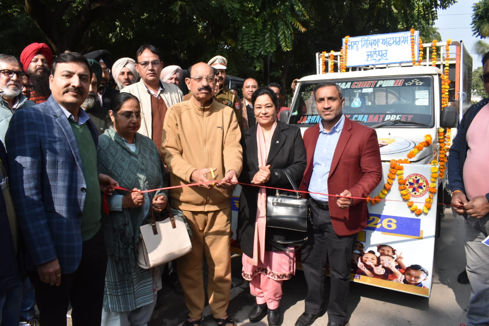 ਫੋਟੋ ਕੈਪਸ਼ਨ:- ਦਾਖ਼ਲਾ ਵੈਨ ਰੈਲੀ ਨੂੰ ਹਰੀ ਝੰਡੀ ਦਿਖਾ ਕੇ ਰਵਾਨਾ ਕਰਦੇ ਹੋਏ ਕੈਬਨਿਟ ਮੰਤਰੀ ਮੋਹਿੰਦਰ ਭਗਤ, ਜ਼ਿਲ੍ਹਾ ਸਿੱਖਿਆ ਅਫ਼ਸਰ ਡਾ.ਗੁਰਿੰਦਰਜੀਤ ਕੌਰ, ਜ਼ਿਲ੍ਹਾ ਸਿੱਖਿਆ ਅਫ਼ਸਰ ਹਰਜਿੰਦਰ ਕੌਰ, ਉੱਪ ਜ਼ਿਲ੍ਹਾ ਸਿੱਖਿਆ ਅਫ਼ਸਰ ਰਾਜੀਵ ਜੋਸ਼ੀ, ਉੱਪ ਜ਼ਿਲ੍ਹਾ ਸਿੱਖਿਆ ਅਫ਼ਸਰ ਮੁਨੀਸ਼ ਸ਼ਰਮਾ ਅਤੇ ਹੋਰ।