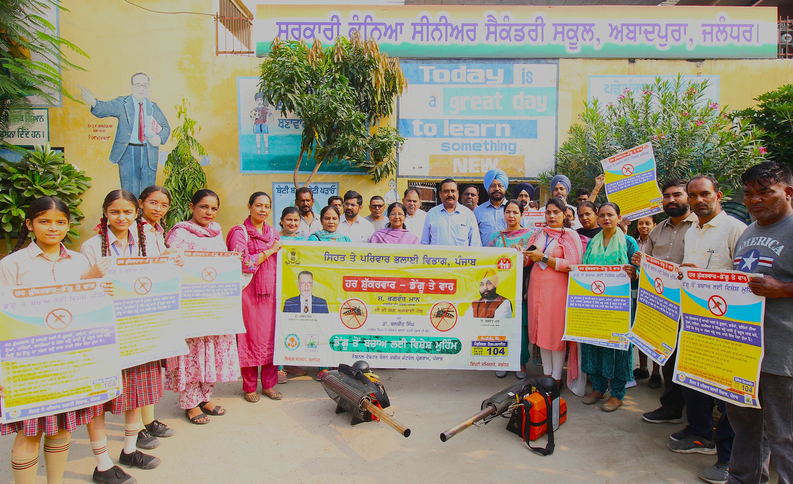 ਜਲੰਧਰ (03-10-2025) ਮਾਨਯੋਗ ਮੁੱਖ ਮੰਤਰੀ ਪੰਜਾਬ ਸ. ਭਗਵੰਤ ਸਿੰਘ ਮਾਨ ਜੀ ਦੇ ਹੁਕਮਾਂ ਅਤੇ ਸਿਹਤ ਮੰਤਰੀ ਡਾ. ਬਲਬੀਰ ਸਿੰਘ ਜੀ ਦੇ ਦਿਸ਼ਾ-ਨਿਰਦੇਸ਼ਾਂ ਅਨੁਸਾਰ ਸਿਹਤ ਵਿਭਾਗ ਜਲੰਧਰ ਵੱਲੋਂ ਸਿਵਲ ਸਰਜਨ (ਕਾਰਜਕਾਰੀ) ਜਲੰਧਰ ਡਾ. ਰਮਨ ਗੁਪਤਾ ਦੀ ਅਗਵਾਈ ਹੇਠ ਸਰਕਾਰੀ ਗਰਲਜ਼ ਸੀਨੀਅਰ ਸੈਕੇਂਡਰੀ ਸਕੂਲ, ਆਬਾਦਪੁਰਾ ਵਿਖੇ “ਹਰ ਸ਼ੁੱਕਰਵਾਰ – ਡੇਂਗੂ ‘ਤੇ ਵਾਰ” ਮੁਹਿੰਮ ਚਲਾਈ ਗਈ। ਇਸਦੇ ਤਹਿਤ ਸਿਵਲ ਸਰਜਨ (ਕਾਰਜਕਾਰੀ) ਜਲੰਧਰ ਡਾ. ਰਮਨ ਗੁਪਤਾ ਵੱਲੋਂ ਸਕੂਲੀ ਵਿਦਿਆਰਥਣਾਂ ਨੂੰ ਡੇਂਗੂ ਤੋਂ ਬਚਾਅ ਪ੍ਰਤੀ ਜਾਗਰੂਕ ਕੀਤਾ ਗਿਆ। ਇਸ ਮੌਕੇ ਉਨ੍ਹਾਂ ਦੇ ਨਾਲ ਡਿਪਟੀ ਮੈਡੀਕਲ ਕਮਿਸ਼ਨਰ ਡਾ. ਜਸਵਿੰਦਰ ਸਿੰਘ, ਜਿਲ੍ਹਾ ਐਪੀਡਮੋਲੋਜਿਸਟ ਡਾ. ਆਦਿਤਯਪਾਲ, ਜਿਲ੍ਹਾ ਸਮੂਹ ਸਿੱਖਿਆ ਤੇ ਸੂਚਨਾ ਅਫ਼ਸਰ ਗੁਰਦੀਪ ਸਿੰਘ, ਡਿਪਟੀ ਐਮਈਆਈਓ ਅਸੀਮ ਸ਼ਰਮਾ, ਸਕੂਲ ਪ੍ਰਿੰਸਿਪਲ ਸੋਨੀਆ ਧਵਨ, ਮੈਡਮ ਪ੍ਰਵੀਨ ਬਾਲਾ, ਤ੍ਰਿਪਤਾ ਭਾਟੀਆ, ਸਰੋਜ ਕੁਮਾਰੀ, ਨੀਰਜਾ ਧਵਨ, ਗੁਰਜੀਤ ਸਿੰਘ, ਏਐਨਐਮਜ਼, ਆਸ਼ਾ ਵਰਕਰ ਅਤੇ ਐਂਟੀ ਲਾਰਵਾ ਟੀਮਾਂ ਮੌਜੂਦ ਸਨ।