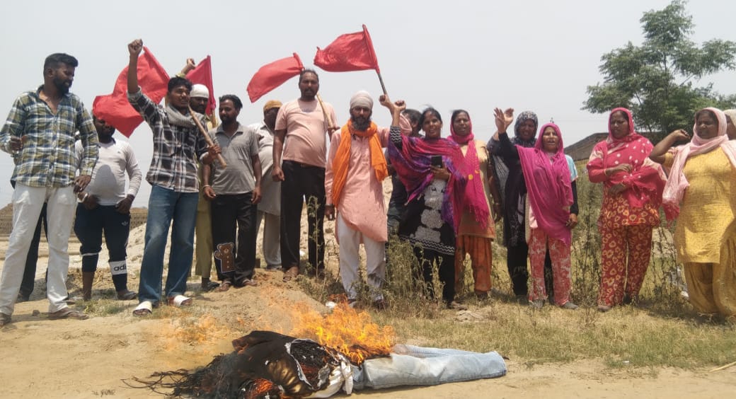 ਪੇਂਡੂ ਮਜ਼ਦੂਰ ਯੂਨੀਅਨ ਪੰਜਾਬ ਦੀ ਅਗਵਾਈ ਹੇਠ ਪੇਂਡੂ ਮਜ਼ਦੂਰਾਂ ਨੇ ਹਲਕਾ ਵਿਧਾਇਕ ਟਾਂਡਾ ਅਤੇ ਐੱਸ ਐੱਸ ਪੀ ਹੁਸ਼ਿਆਰਪੁਰ ਦੇ ਇਸ਼ਾਰੇ ‘ਤੇ ਹਲਕਾ ਵਿਧਾਇਕ ਨੂੰ ਸਵਾਲ ਪੁੱਛਣ ਤੋਂ ਬੁਖਲਾਹਟ ਵਿੱਚ ਆ ਕੇ ਦਲਿਤ ਮਜ਼ਦੂਰਾਂ ਦੀ ਆਵਾਜ਼ ਦਬਾਉਣ ਲਈ ਪੇਂਡੂ ਮਜ਼ਦੂਰ ਆਗੂ ਨਾਵਲ ਗਿੱਲ ਟਾਹਲੀ ਤੇ ਹੋਰਨਾਂ ਦਲਿਤ ਮਜ਼ਦੂਰਾਂ ਨੂੰ ਮਨਘੜ੍ਹਤ ਕੇਸ ਵਿੱਚ 21 ਮਈ ਨੂੰ ਜੇਲ੍ਹ ਭੇਜਣ ਦੇ ਵਿਰੋਧ ਵਿੱਚ ਅੱਜ ਹੁਸ਼ਿਆਰਪੁਰ, ਕਪੂਰਥਲਾ, ਜਲੰਧਰ ਜ਼ਿਲ੍ਹਿਆਂ ਸਮੇਤ ਪੰਜਾਬ ਭਰ ਵਿੱਚ ਪਿੰਡਾਂ ਅੰਦਰ ਆਮ ਆਦਮੀ ਪਾਰਟੀ ਦੇ ਹਲ਼ਕਾ ਵਿਧਾਇਕ ਜਸਵੀਰ ਰਾਜਾ ਅਤੇ ਐੱਸ ਐੱਸ ਪੀ ਹੁਸ਼ਿਆਰਪੁਰ ਦੇ ਪੁਤਲੇ ਸਾੜ ਕੇ ਜ਼ੋਰਦਾਰ ਨਾਅਰੇਬਾਜ਼ੀ ਕੀਤੀ ਗਈ। ਪੁਤਲਾ ਫ਼ੂਕ ਪ੍ਰਦਰਸ਼ਨ 23 ਮਈ ਨੂੰ ਵੀ ਜਾਰੀ ਰਹਿਣਗੇ।