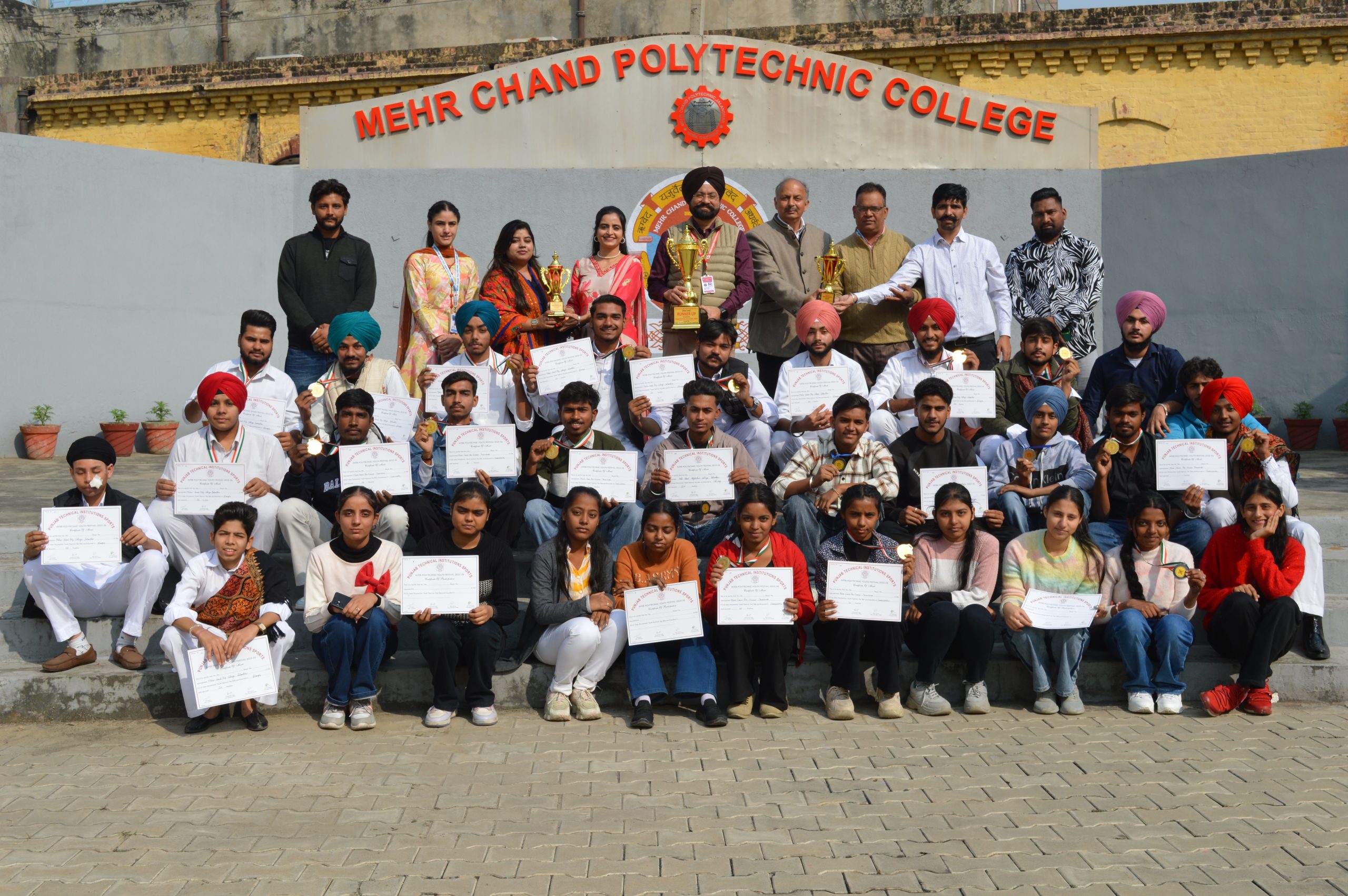 “ਮੇਹਰ ਚੰਦ ਪਾਲੀਟੈਕਨਿਕ ਕਾਲਜ ਜਲੰਧਰ ਨੇ ਇੰਟਰ-ਪਾਲੀਟੈਕਨਿਕ ਪੀ.ਟੀ.ਆਈ.ਐਸ. ਯੂਥ ਫੈਸਟਿਵਲ ਵਿੱਚ ਉਮਦਾ ਪ੍ਰਦਰਸ਼ਨ ਕਰਦਿਆਂ ਕੋਰਿਓਗ੍ਰਾਫੀ ਵਿੱਚ ਗੋਲਡ ਮੈਡਲ, ਭੰਗੜੇ ਵਿੱਚ ਗੋਲਡ ਮੈਡਲ ਅਤੇ ਲੋਕ ਗੀਤ ਲੜਕੇ ਅਤੇ ਲੜਕੀਆਂ ਦੋਵਾਂ ਦੇ ਮੁਕਾਬਲਿਆਂ ਵਿੱਚ ਤੀਜਾ ਸਥਾਨ ਹਾਸਲ ਕਰਕੇ ਕਾਂਸੇ ਦਾ ਤਗਮਾ ਜਿੱਤਿਆ। ਇਸਦੇ ਨਾਲ ਹੀ ਕਾਲਜ ਨੇ ਫਸਟ ਰਨਰ-ਅੱਪ ਟ੍ਰਾਫੀ ‘ਤੇ ਵੀ ਕਬਜ਼ਾ ਕੀਤਾ। ਇਹ ਯੂਥ ਫੈਸਟਿਵਲ ਗੁਰੂ ਨਾਨਕ ਦੇਵ ਯੂਨੀਵਰਸਿਟੀ ਦੇ ਦਸ਼ਮੇਸ਼ ਆਡੀਟੋਰੀਅਮ ਵਿੱਚ ਹੋਇਆ, ਜੋ ਕਿ ਸਰਕਾਰੀ ਪਾਲੀਟੈਕਨਿਕ ਕਾਲਜ ਅੰਮ੍ਰਿਤਸਰ ਦੀ ਦੇਖ-ਰੇਖ ਵਿੱਚ ਆਯੋਜਿਤ ਕੀਤਾ ਗਿਆ।