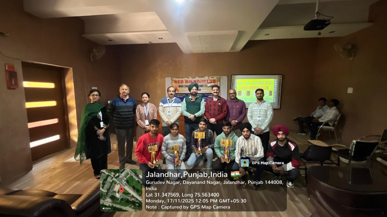ਮੇਹਰਚੰਦ ਪਾਲੀਟੈਕਨਿਕ ਕਾਲਜ ਵਿਖੇ ਕਾਲਜ ਦੇ ਰੈਡ ਰਿਬਨ ਕਲੱਬ ਦੇ ਸਹਿਯੋਗ ਨਾਲ ਰਾਸ਼ਟਰੀ ਫਾਰਮੇਸੀ ਹਫਤਾ ਮਨਾਇਆ ਗਿਆ | ਇਸ ਹਫਤੇ ਵਿਚ ਕਵਿਜ਼ ਮੁਕਾਬਲੇ ਦਾ ਖਾਸ ਆਯੋਜਨ ਕੀਤਾ ਗਿਆ ਜਿਸ ਵਿਚ ਕਾਲਜ ਦੇ ਵੱਖੋ-ਵੱਖ ਵਿਭਾਗਾਂ ਦੇ ਵਿਦਿਆਰਥੀਆਂ ਨੇ ਹਿੱਸਾ ਲਿਆ। ਇਹਨਾਂ ਮੁਕਾਬਲਿਆਂ ਦੀ ਪ੍ਰਧਾਨਗੀ ਕਾਲਜ ਦੇ ਪ੍ਰਿੰਸੀਪਲ ਡਾਕਟਰ ਜਗਰੂਪ ਸਿੰਘ ਨੇ ਕੀਤੀ। ਉਹਨਾਂ ਨੇ ਇਸ ਮੌਕੇ ਤੇ ਬੋਲਦੇ ਹੋਏ ਕਿਹਾ ਕਿ ਪ੍ਰਤੀਯੋਗਿਤਾ ਦਾ ਮੁੱਖ ਮਕਸਦ ਨੌਂਜਵਾਨਾਂ ਨੂੰ ਸਮਾਜਿਕ ਬੁਰਾਈਆਂ ਤੋਂ ਬਚਾਉਣਾ ਹੈ। ਉਹਨਾਂ ਨੇ ਕਿਹਾ ਕਿ ਰੈਡ ਰਿਬਨ ਕਲੱਬ ਨਸ਼ਿਆਂ ਦੇ ਬੁਰੇ ਪ੍ਰਭਾਵ, ਏਡਜ਼, ਖੂਨਦਾਨ ਅਤੇ ਟੀ.ਬੀ. ਵਰਗੀਆਂ ਬਿਮਾਰੀਆਂ ਦੀ ਜਾਨਕਾਰੀ ਦੇਣ ਲਈ ਸ਼ਲਾਘਾਯੋਗ ਕੰਮ ਕਰ ਰਿਹਾ ਹੈ।