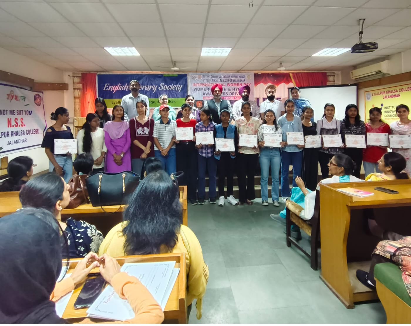 ਲਾਇਲਪੁਰ ਖਾਲਸਾ ਕਾਲਜ ਜਲੰਧਰ ਦੇ ਪੀ.ਜੀ. ਅੰਗਰੇਜ਼ੀ ਵਿਭਾਗ ਦੇ ਅੰਗਰੇਜ਼ੀ ਸਾਹਿਤਕ ਸੋਸਾਇਟੀ, ਐਨ.ਐਸ.ਐਸ. ਯੂਨਿਟ, ਰੈੱਡ ਰਿਬਨ ਕਲੱਬ ਅਤੇ ਆਈ.ਆਈ.ਸੀ. ਨੇ ਰੋਟਰੀ ਕਲੱਬ ਜਲੰਧਰ ਹੈਲਪਿੰਗ ਹੈਂਡਸ ਦੇ ਸਹਿਯੋਗ ਨਾਲ ਮਹਿਲਾ ਅਧਿਆਪਨ ਅਤੇ ਗੈਰ-ਅਧਿਆਪਨ ਸਟਾਫ਼ ਅਤੇ ਵਿਦਿਆਰਥੀਆਂ ਲਈ ਮਹਿਲਾ ਸਿਹਤ ਨਾਲ ਸਬੰਧਿਤ ਇੱਕ ਇੰਟਰਐਕਟਿਵ ਸੈਸ਼ਨ ਦਾ ਆਯੋਜਨ ਕੀਤਾ। ਇਸ ਸਮਾਗਮ ਵਿਚ ਡਾ. ਹਰਿੰਦਰ ਕੌਰ, ਜੋ ਇਨੋਸੈਂਟ ਹਾਰਟ ਹਸਪਤਾਲ, ਜਲੰਧਰ ਵਿਖੇ ਇੱਕ ਤਜਰਬੇਕਾਰ ਗਾਇਨੀਕੋਲੋਜਿਸਟ ਨੇ ਮੁੱਖ ਵਕਤਾ ਵਜੋਂ ਸ਼ਿਰਕਤ ਕੀਤੀ। ਪ੍ਰਿੰਸੀਪਲ ਡਾ. ਰਛਪਾਲ ਸਿੰਘ ਸੰਧੂ ਅਤੇ ਡਾ. ਬਲਰਾਜ ਕੌਰ, ਮੁਖੀ ਅੰਗਰੇਜ਼ੀ ਵਿਭਾਗ ਨੇ ਉਨ੍ਹਾਂ ਦਾ ਫੁੱਲਾਂ ਦੇ ਗੁਲਦਸਤੇ ਨਾਲ ਸਵਾਗਤ ਕੀਤਾ। ਡਾ. ਸੰਧੂ ਨੇ ਆਪਣੇ ਉਦਘਾਟਨੀ ਭਾਸ਼ਣ ਵਿੱਚ ਅੰਤਰਰਾਸ਼ਟਰੀ ਮਹਿਲਾ ਦਿਵਸ ਮਨਾਉਣ ਦੀ ਮਹੱਤਤਾ ਬਾਰੇ ਦੱਸਿਆ। ਉਨ੍ਹਾਂ ਨੇ ਔਰਤਾਂ ਲਈ ਬਰਾਬਰ ਮੌਕੇ ਦੀ ਵਕਾਲਤ ਕੀਤੀ ਅਤੇ ਰਾਜ ਅਤੇ ਰਾਸ਼ਟਰੀ ਪੱਧਰ ‘ਤੇ ਸ਼ਾਨਦਾਰ ਪ੍ਰਾਪਤੀਆਂ ਪ੍ਰਾਪਤ ਕਰਨ ਵਾਲੀਆਂ ਵਿਦਿਆਰਥਣਾਂ ਅਤੇ ਸਟਾਫ ਮੈਂਬਰਾਂ ਦੀ ਸ਼ਲਾਘਾ ਕੀਤੀ। ਡਾ. ਹਰਿੰਦਰ ਕੌਰ ਨੇ ਆਪਣੇ ਸੰਬੋਧਨ ਵਿੱਚ ਔਰਤਾਂ ਦੀ ਸਿਹਤ ਬਾਰੇ ਚਰਚਾ ਕੀਤੀ। ਉਨ੍ਹਾਂ ਨੇ ਔਰਤਾਂ ਦੀ ਸਿਹਤ ਨਾਲ ਸੰਬੰਧਿਤ ਵੱਖ-ਵੱਖ ਬਿਮਾਰੀਆਂ, ਕਾਰਨਾਂ ਅਤੇ ਉਪਾਵਾਂ ਬਾਰੇ ਵਿਸਥਾਰ ਵਿੱਚ ਦੱਸਿਆ। ਉਨ੍ਹਾਂ ਨੇ ਔਰਤਾਂ ਲਈ ਸਹੀ ਖੁਰਾਕ, ਕਸਰਤ ਅਤੇ ਮਾਨਸਿਕ ਤੰਦਰੁਸਤੀ ‘ਤੇ ਜ਼ੋਰ ਦਿੱਤਾ। ਇਸ ਤੋ ਇਲਾਵਾ ਡਾ. ਮਨਦੀਪ ਸਿੰਘ ਨੇ ਔਰਤ ਪਛਾਣ ਨਾਲ ਸਬੰਧਤ ਵੱਖ-ਵੱਖ ਮਿੱਥਾਂ ਦਾ ਵਰਣਨ ਕੀਤਾ ਅਤੇ ਸਾਰਿਆਂ ਨੂੰ ਔਰਤਾਂ ਦੇ ਹਿੱਤਾਂ ਬਾਰੇ ਵਧੇਰੇ ਸਕਾਰਾਤਮਕ ਅਤੇ ਪ੍ਰਗਤੀਸ਼ੀਲ ਹੋਣ ਦੀ ਅਪੀਲ ਕੀਤੀ। ਇਸ ਸਮਾਗਮ ਦੌਰਾਨ, ਰਾਜ ਅਤੇ ਰਾਸ਼ਟਰੀ ਸਮਾਗਮਾਂ (ਨਵੀਂ ਦਿੱਲੀ ਵਿਖੇ ਗਣਤੰਤਰ ਦਿਵਸ ਦੀ ਝਾਕੀ, ਤੇਲੰਗਾਨਾ ਵਿਖੇ ਰਾਸ਼ਟਰੀ ਏਕਤਾ ਕੈਂਪ, ਰਾਜ ਪੱਧਰੀ ਐਡਵੈਂਚਰ ਕੈਂਪ ਅਤੇ ਰਾਜ ਪੱਧਰੀ ਯੁਵਾ ਸੰਸਦ) ਵਿੱਚ ਹਿੱਸਾ ਲੈਣ ਵਾਲੀਆਂ ਮਹਿਲਾ ਐਨ.ਐਸ.ਐਸ. ਵਲੰਟੀਅਰਾਂ ਨੂੰ ਸਨਮਾਨਿਤ ਕੀਤਾ ਗਿਆ। ਅੰਤ ਵਿਚ ਡਾ. ਬਲਰਾਜ ਕੌਰ ਨੇ ਸਾਰਿਆ ਦਾ ਧੰਨਵਾਦ ਕੀਤਾ। ਸਟੇਜ ਦਾ ਪ੍ਰਬੰਧਨ ਐਨ.ਐਸ.ਐਸ. ਦੇ ਮੁੱਖ ਪ੍ਰੋਗਰਾਮ ਅਧਿਕਾਰੀ ਪ੍ਰੋ. ਸਤਪਾਲ ਸਿੰਘ ਦੁਆਰਾ ਕੀਤਾ ਗਿਆ। ਇਸ ਸਮਾਗਮ ਦੌਰਾਨ, ਫਿਜ਼ੀਓਥੈਰੇਪੀ ਵਿਭਾਗ ਤੋਂ ਡਾ. ਜਸਵੰਤ ਕੌਰ, ਰਾਜਨੀਤੀ ਸ਼ਾਸਤਰ ਵਿਭਾਗ ਦੇ ਮੁਖੀ ਪ੍ਰੋ. ਅਨੂ ਮੂਮ, ਭੂਗੋਲ ਵਿਭਾਗ ਦੇ ਮੁਖੀ ਪ੍ਰੋ. ਪੂਜਾ ਰਾਣਾ, ਟੀਚਿੰਗ ਅਤੇ ਨਾਨ-ਟੀਚਿੰਗ ਸਟਾਫ਼ ਮੈਂਬਰ ਅਤੇ ਮਹਿਲਾ ਵਿਦਿਆਰਥੀ ਵੱਡੀ ਗਿਣਤੀ ਵਿੱਚ ਮੌਜੂਦ ਸਨ।