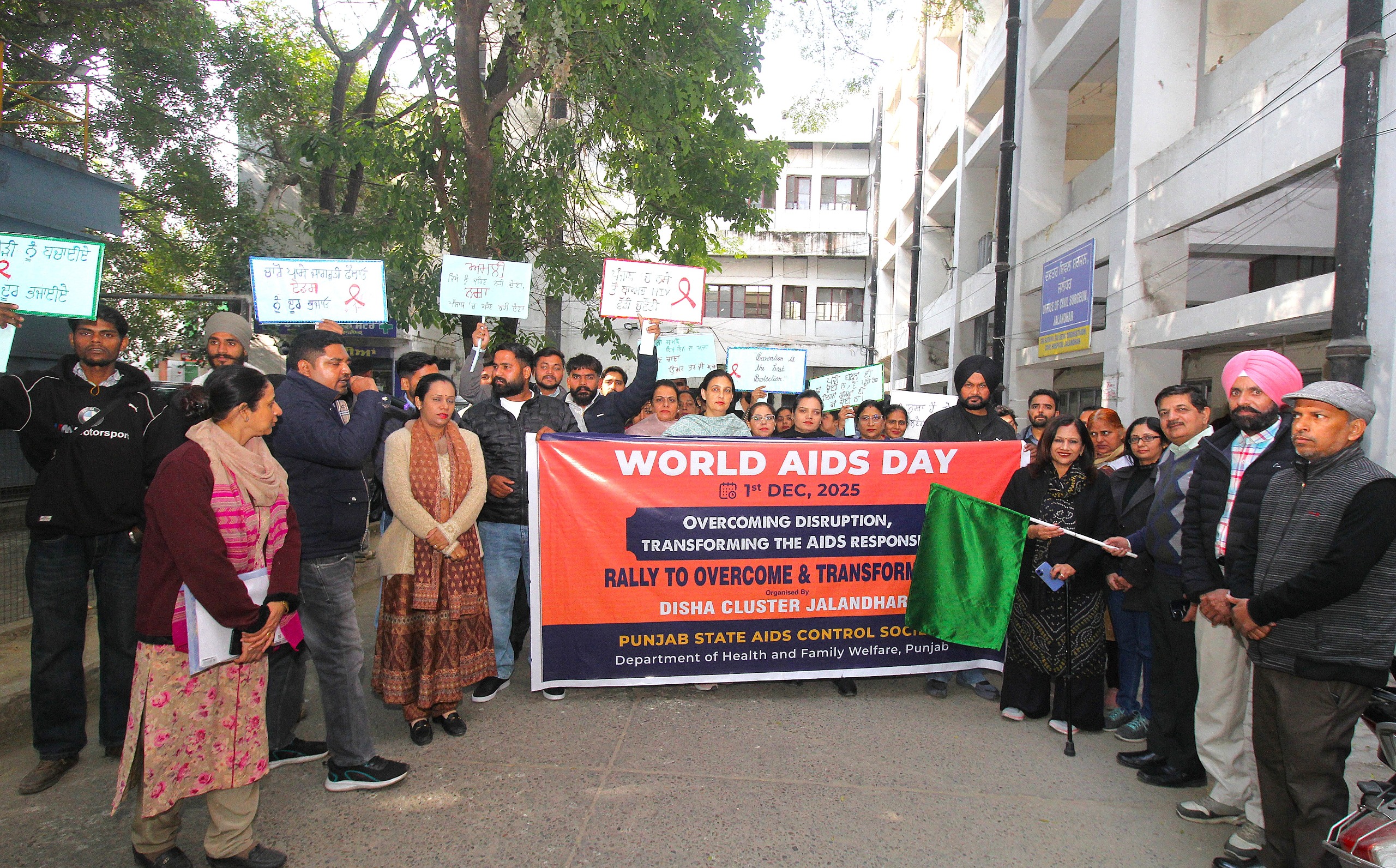 ਜਲੰਧਰ (01-12-2025): “ਵਿਸ਼ਵ ਏਡਜ਼ ਦਿਵਸ” ਮੌਕੇ ਸਿਵਲ ਸਰਜਨ ਡਾ. ਰਾਜੇਸ਼ ਗਰਗ ਜੀ ਦੇ ਦਿਸ਼ਾ-ਨਿਰਦੇਸ਼ਾਂ ਤਹਿਤ ਸਿਹਤ ਵਿਭਾਗ ਵੱਲੋਂ “ਦਿਸ਼ਾ” ਪੰਜਾਬ ਸਟੇਟ ਏਡਜ਼ ਕੰਟਰੋਲ ਸੋਸਾਇਟੀ ਦੇ ਸਹਿਯੋਗ ਨਾਲ ਨਰਸਿੰਗ ਸਕੂਲ ਸਿਵਲ ਹਸਪਤਾਲ ਵਿਖੇ ਜਾਗਰੂਕਤਾ ਸੈਮੀਨਾਰ ਦਾ ਆਯੋਜਨ ਕੀਤਾ ਗਿਆ। ਜਿਸ ਦੀ ਅਗਵਾਈ ਜਿਲ੍ਹਾ ਟੀਕਾਕਰਨ ਅਫ਼ਸਰ ਡਾ. ਰਾਕੇਸ਼ ਚੋਪੜਾ ਵੱਲੋਂ ਕੀਤੀ ਗਈ। ਇਸ ਉਪਰੰਤ “ਦਿਸ਼ਾ” ਪੰਜਾਬ ਸਟੇਟ ਏਡਜ਼ ਕੰਟਰੋਲ ਸੋਸਾਇਟੀ ਵੱਲੋਂ ਸਿਵਲ ਸਰਜਨ ਦਫ਼ਤਰ ਤੋਂ ਏਡਜ਼ ਜਾਗਰੂਕਤਾ ਰੈਲੀ ਵੀ ਕੱਢੀ ਗਈ ਜਿਸਨੂੰ ਸਹਾਇਕ ਸਿਵਲ ਸਰਜਨ ਡਾ. ਜੋਤੀ ਫੁਕੇਲਾ ਅਤੇ ਜਿਲ੍ਹਾ ਟੀਕਾਕਰਨ ਅਫ਼ਸਰ ਡਾ. ਰਾਕੇਸ਼ ਚੋਪੜਾ ਵੱਲੋਂ ਹਰੀ ਝੰਡੀ ਦੇ ਕੇ ਰਵਾਨਾ ਕੀਤਾ ਗਿਆ।